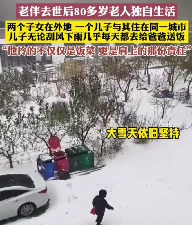 “这对夫妻太暖了!”内蒙古,女子的婆婆去世后,公公不愿跟儿子儿媳住,一个人住在老房子里,自那以后,女子的丈夫无论刮风还是下雨,都会给老人送饭,下雪天,女子丈夫做的一件事,引得全网怒赞,女子:他拎的不是饭菜,是肩上的责任,是一个男人的担当。