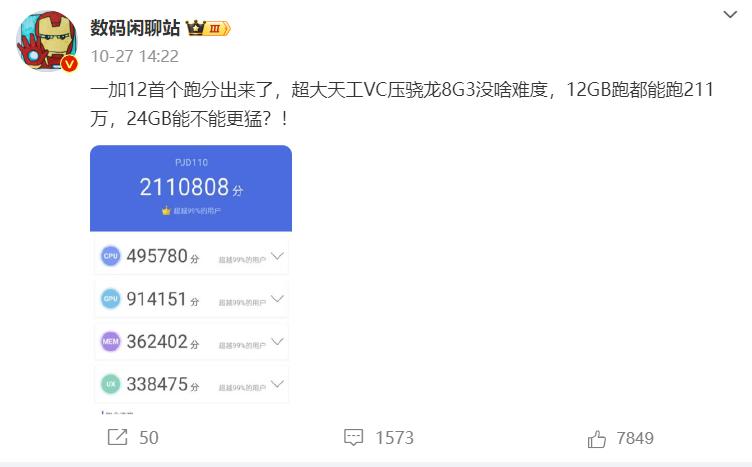 年底换机的朋友爽了,天玑9300参数比骁龙8 Gen 3强好多呀!不过,很多人还是会默默选高通[捂脸]毕竟这几年天玑都是参数没输过,实际体验还是比骁龙差一点,不知道这次能不能站起来?就等着vivo X100的表现了。相比天玑,骁龙8 Gen 3这边会热闹很多,一堆新机扎堆发布。 如果你最近想换机,其实选择蛮多的,像小米14、iQOO 12都已经发布了,还有关注度很高的一加12,我感觉一加这次要爆大招了!听说跑分已经飙到211万了,不知道这次有没有24GB+1TB,这套组合真的绝了。屏幕方面是京东方定制2K屏,亮度超3000nit,高频PWM调光+类DC调光,支持LTPO,给了超薄屏下指纹,同价位那些短焦指纹都学学吧[泪奔] 我对一加12的拍照蛮好奇的,这次会用索尼LYT808主摄,iPhone同款双层晶体管技术,而且还有一颗6400万像素的OV64B潜望长焦,这是要预定4000元影像机皇的节奏吗?