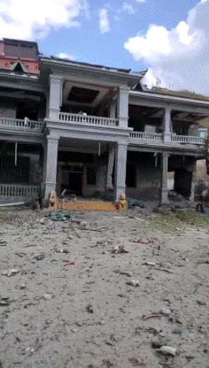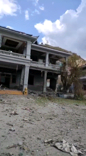 有网传视频拍摄了一栋豪宅已经断壁残垣的景象。从画面看,这间豪宅占地面积很大,主楼为两层,门口有两个金色的狮子雕塑,庭院面积也不小,种着树木,还有个亭子,此前确实应该相当气派,但现在已经是满地瓦砾,也无人居住,显出了破败的样子。