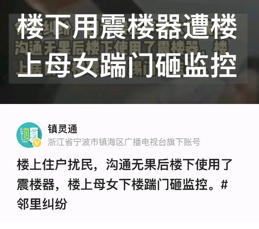 随后,楼下邻居忍无可忍,便购买了震楼器,安装在屋顶上,楼上邻居听到声音后,非常生气,便来到楼下,开始踹门和砸监控。