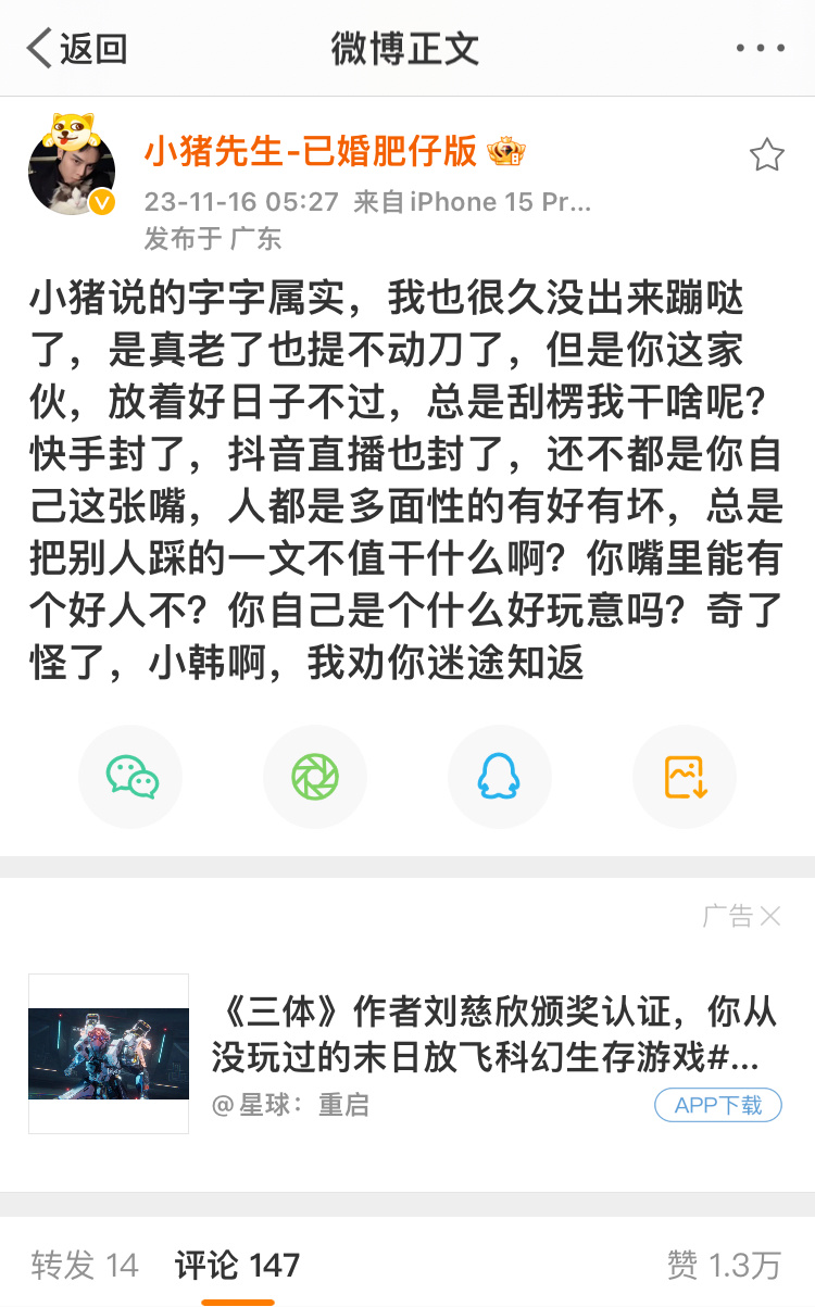 #小猪先生怒怼韩安冉宋浩然#一瓜又一瓜,小猪先生转发韩安冉吸笑气视频,并怒怼宋浩然说他是gay#小猪 兜儿##小猪先生怒怼韩安冉宋浩然#