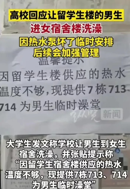 评论区真是乌烟瘴气,2B太多,留学生也是学生,学生洗不了澡学校不应该解决?男生宿舍没有空置的,去女生宿舍闲置的宿舍里洗澡不行?越叫嚣说明越自卑,一点自信都没有还冒充愤青,真tm可笑。