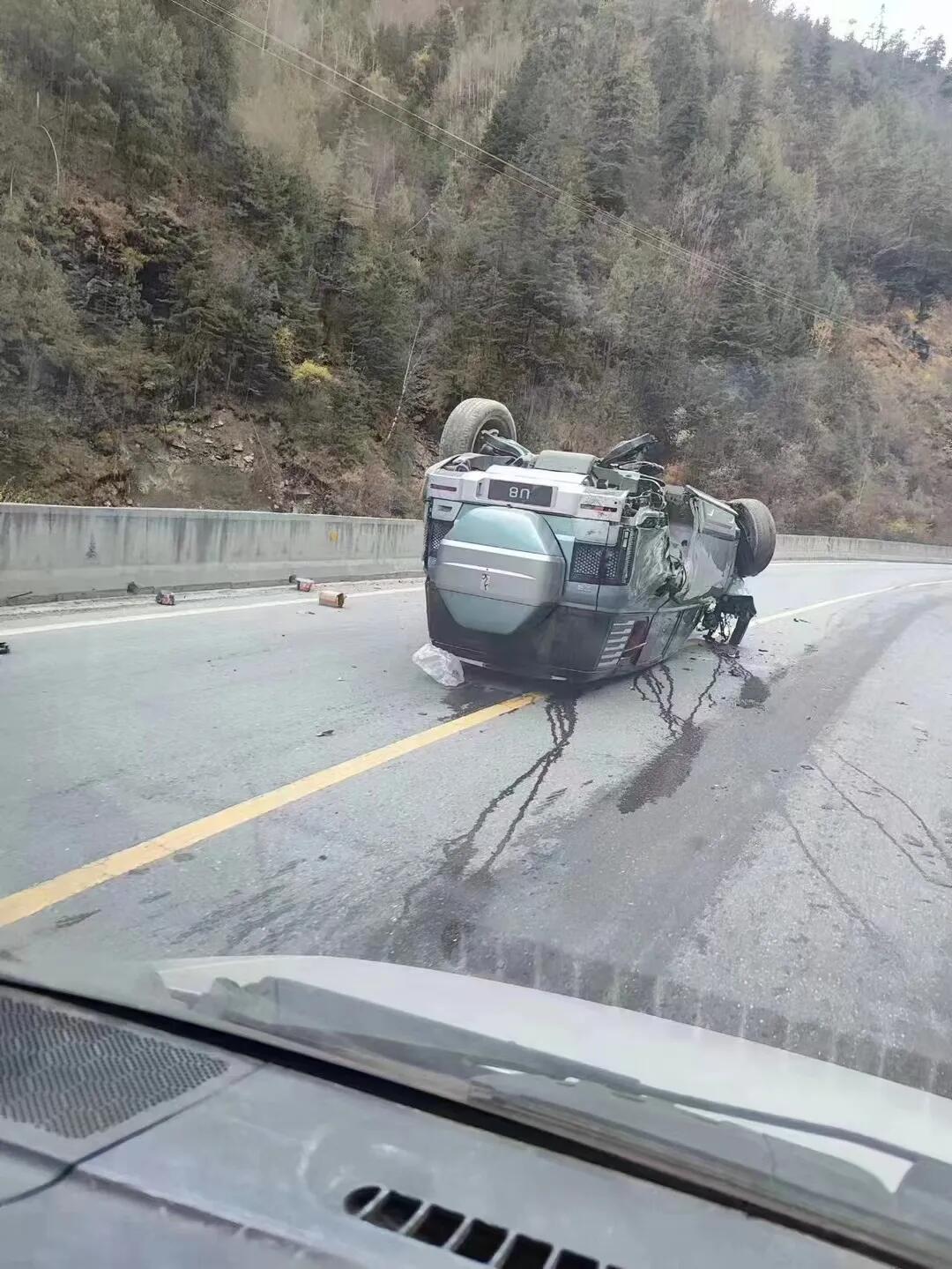 运u8的板车运输发生掉落,这u8从山上掉下来这得翻了多少圈呀
