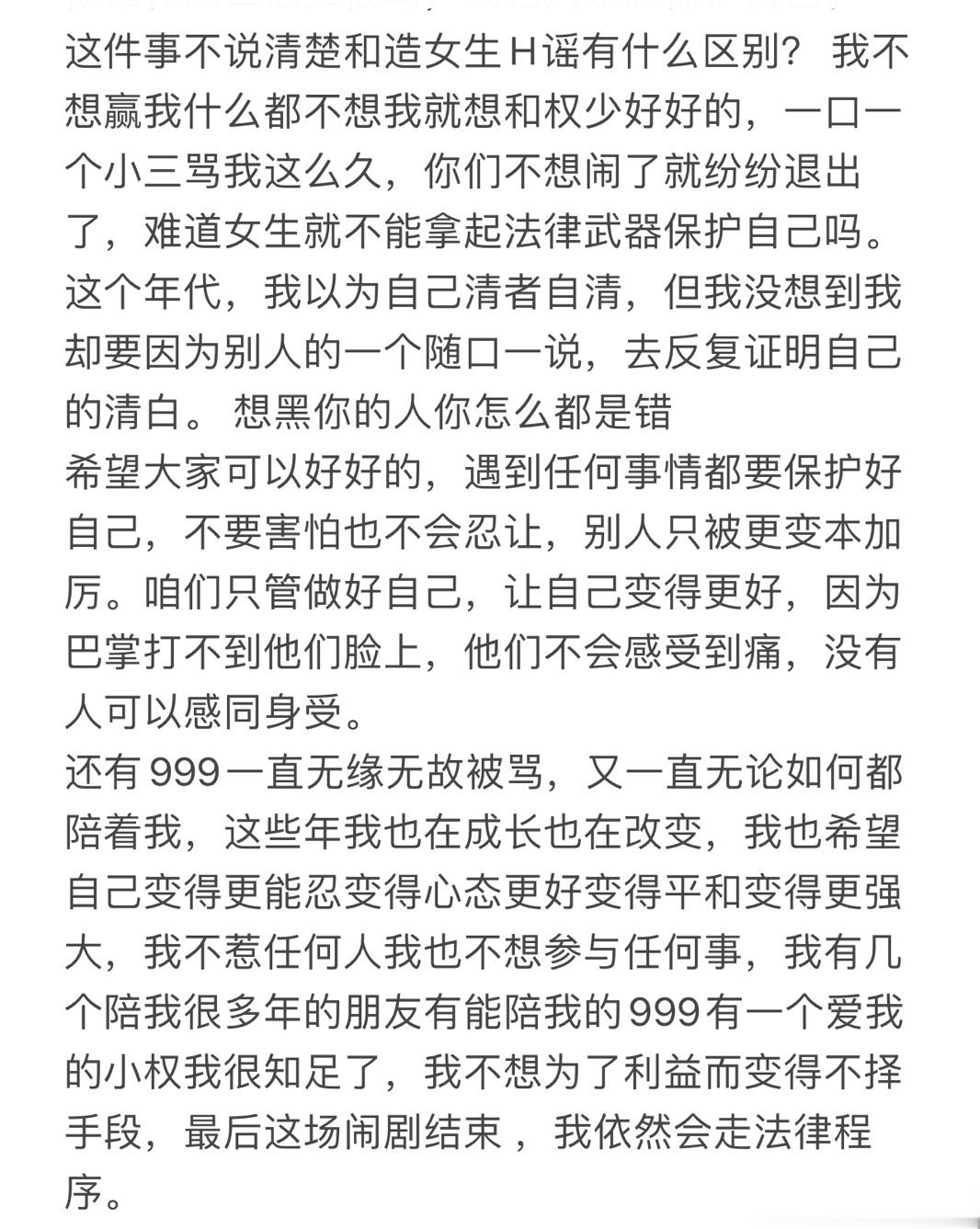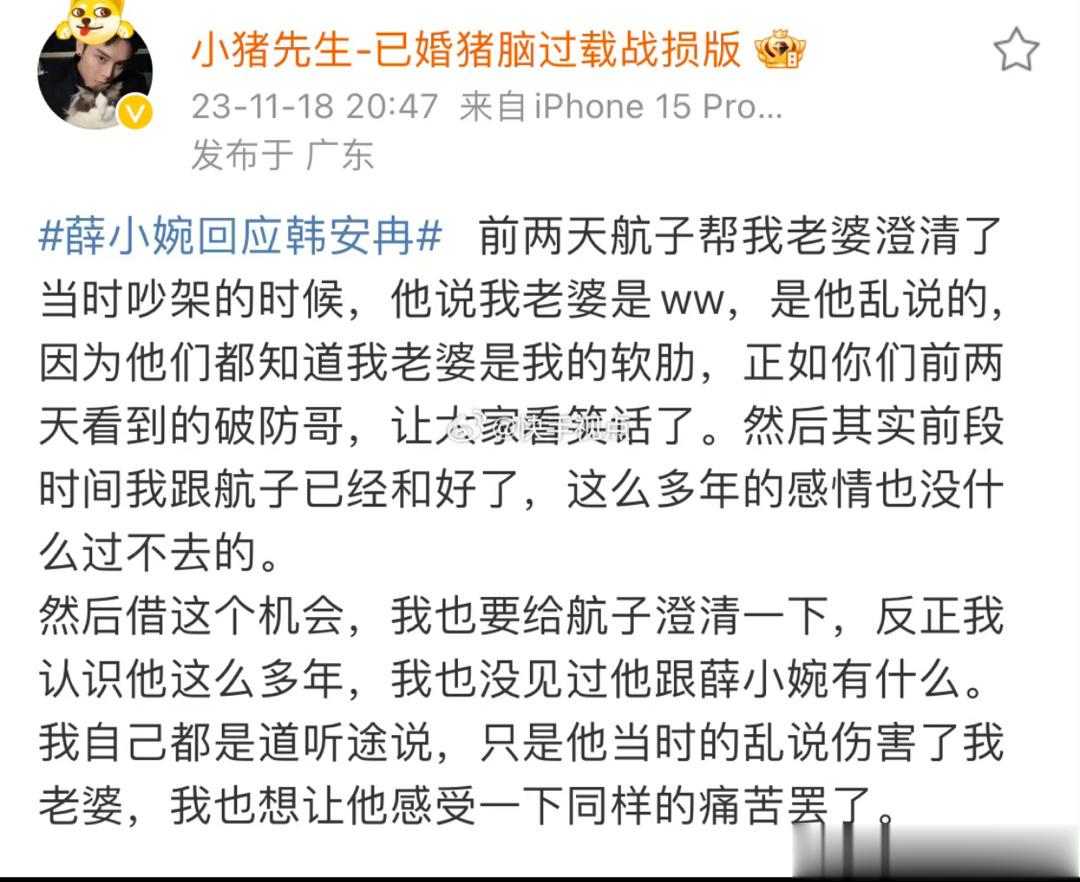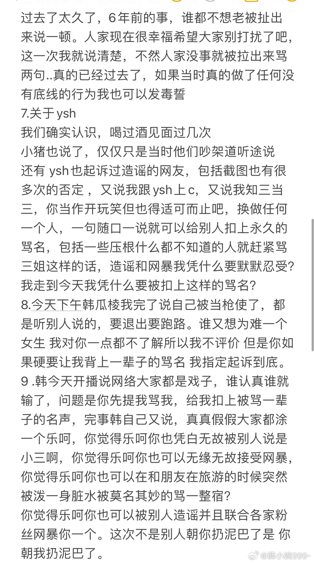 在薛小婉澄清小三传闻后,韩安冉那边又锤起来了。薛小婉回应韩安冉称:“到底谁刮楞谁?我要是刮楞你,你会在v x上和我道歉吗??明明下午说话道过歉了,也不在提了,晚上又开始发酵,你们夫妻二人同时开播是为了给你老公导 流 卖 货吗?随随便便的一句污蔑把我推上风口浪尖,到底在策划什么 韩导? ” #薛小婉 韩安冉#