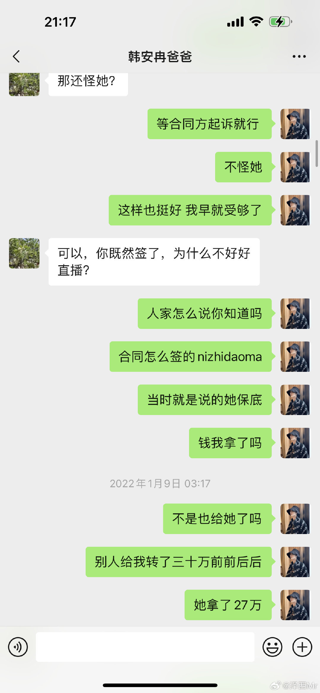泽西说是韩安冉死皮赖脸…#泽西晒与韩安冉聊天记录#