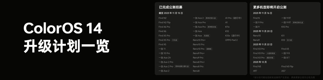 本来已经把iPhone15 Pro卖了,纠结了好几天,又买回来了,你说它充电慢、信号差、容易发烫,我都认了,但是它的手感真的挺不错的,而且从UI到动画,都比很多国产的机子要强得多,鸿蒙OS也未必能做到这一点,而且联动Mac来工作确实很棒。 要说国产里生态比较不错的,除了鸿蒙OS,就数刚发布的ColorOS 14了,升级的Phone Link可以无缝互联Windows电脑,而且中转站拖拽进去的文件,可以随意分享到手机或者平板里。还有网友实测感觉新系统挺稳的,比以前还要流畅一点,而且流体云这个新功能很好用,外卖、导航、打车会有窗口提醒,复制某些特定内容,还会直接弹出对应卡片,省去了来回切换APP的麻烦。 我还特意看了一下适配名单,ColorOS 14将会由Reno11系列首发搭载,而且发布当天已经有Find X6等6款机子可以升级,截止到11月15日也有30款机型完成了公测,而且有将近一半都是一加,这适配确实很积极了,相信很快会有更多的机型可以适配正式版,各位OPPO、一加用户可以第一时间尝鲜看看。#OPPO Reno11#