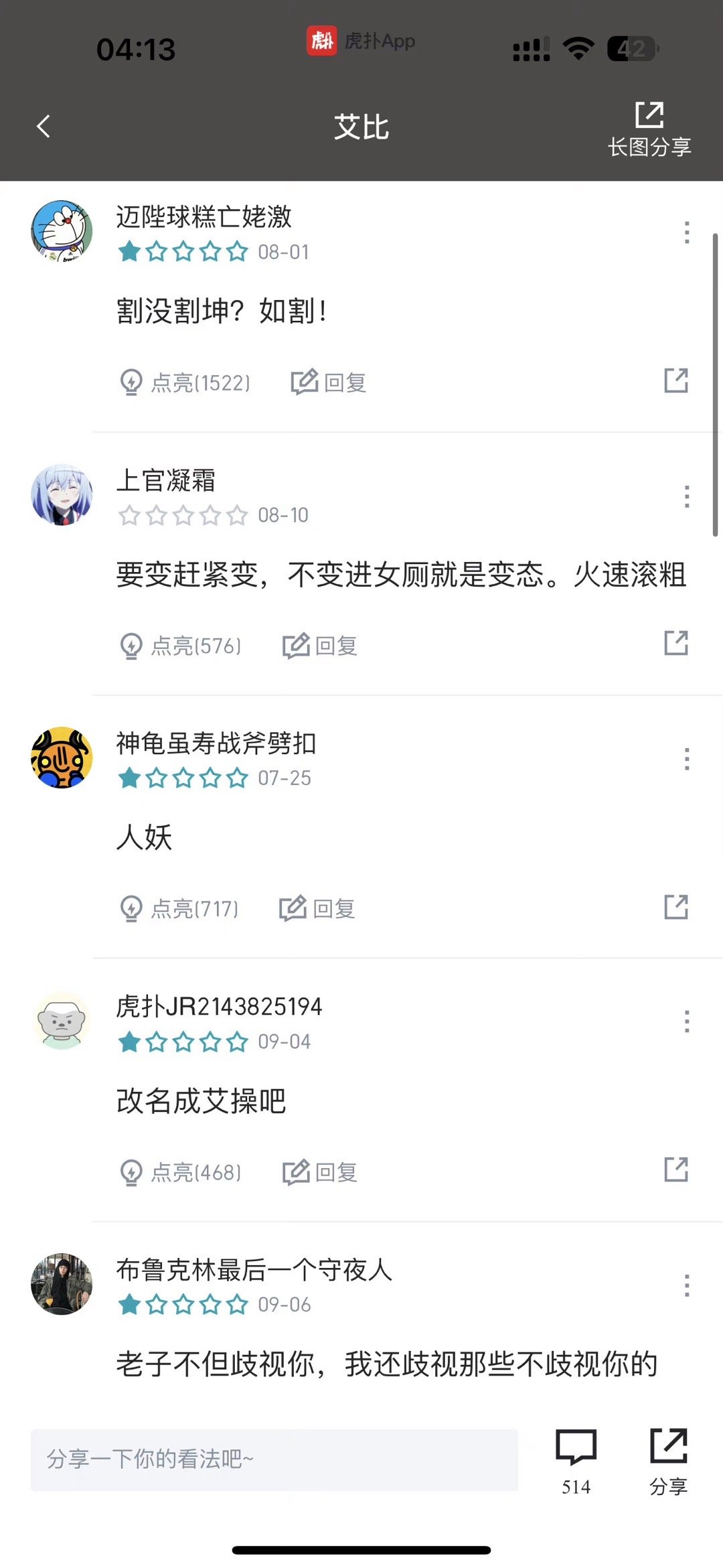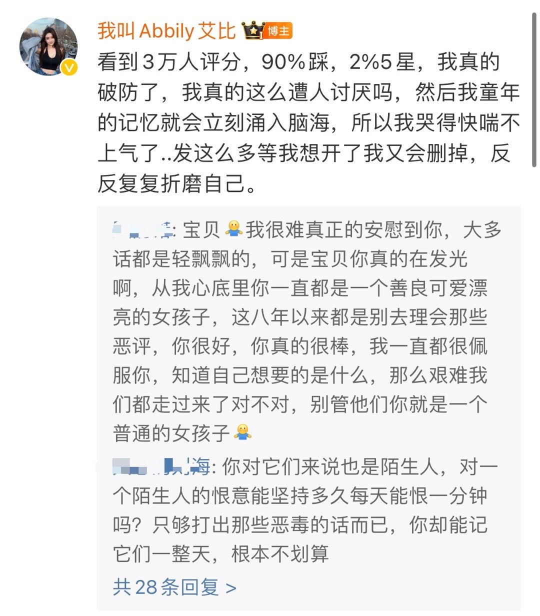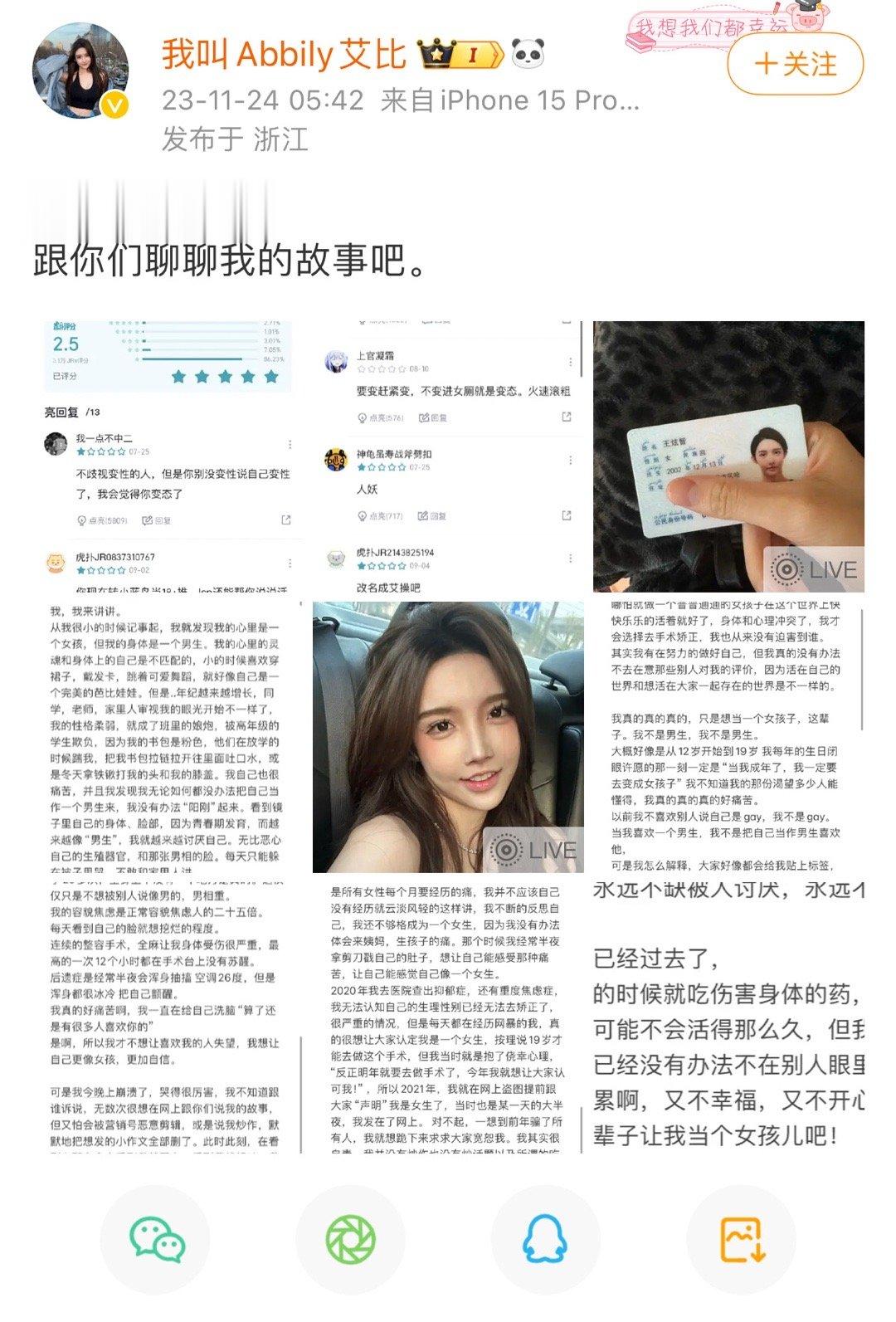 Abbily现在是真正的女生了,还晒出了sfz。她在看到3万人的评分说他是变型男表示直接破防了,90%踩,2%5星。