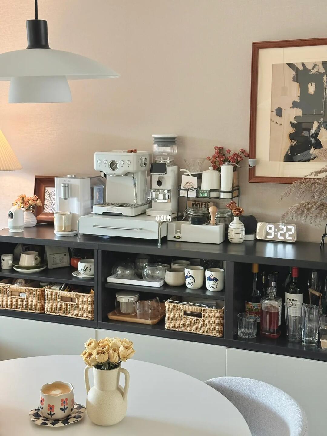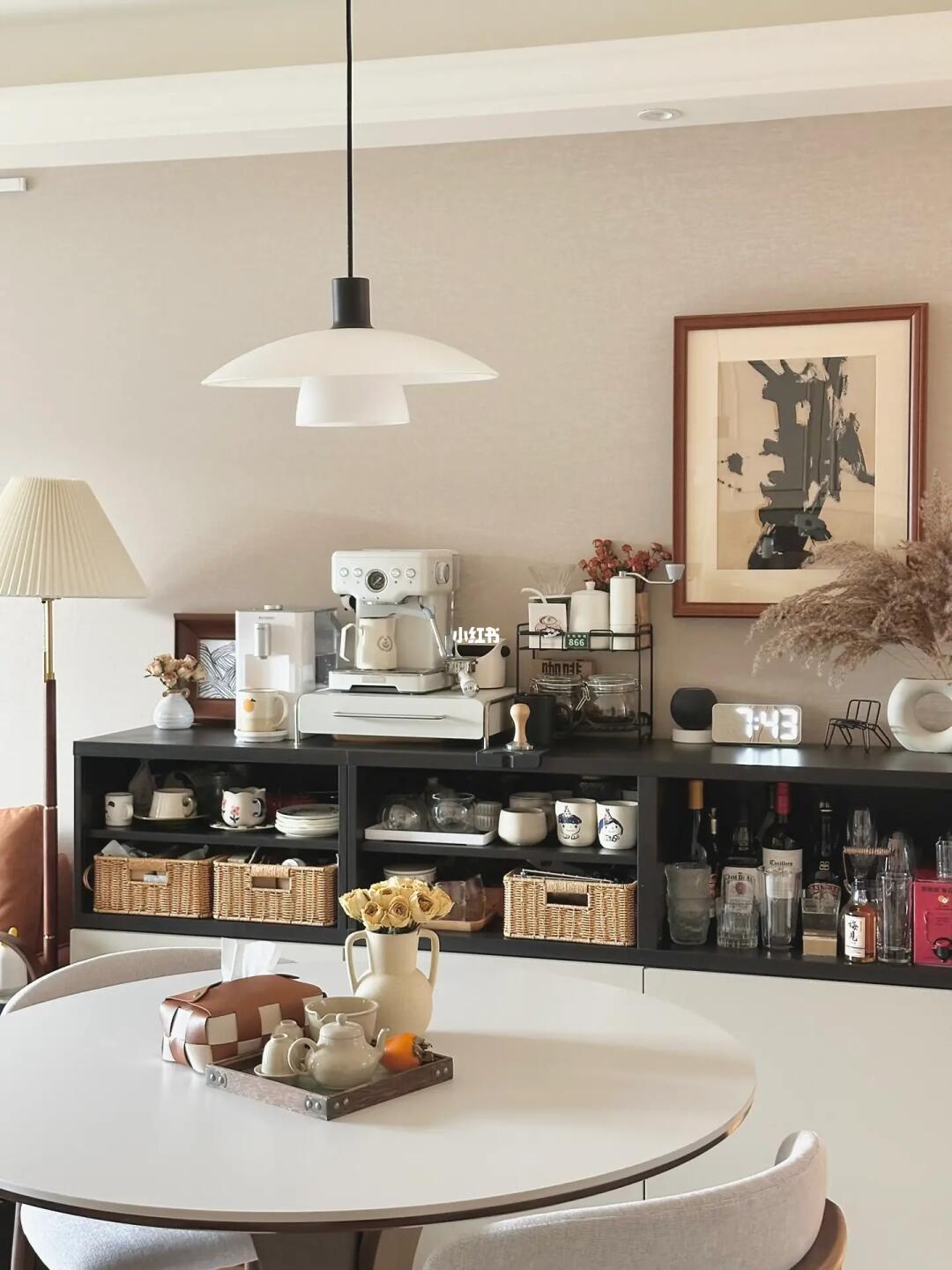 坐标杭州的普通人家🏠 建面91,套内76的小家,三房两卫。 摇号时虽然比较靠前但这个神仙户型(图纸放最后)也只选到了低楼层。 好在是小高层,南边也无遮挡, 冬日里的卧室阳光也会很充盈。 滨江精装修交付,后期大黄砖猪肝红地板都没拆改, 全靠软装搭配出了理想的家🏠 | 虽然房子不大,月供也不低, 但是能和爱的人拥有自己的小家就很知足💗 周末在小餐厅做个咖啡☕开启新的一天, 岩板餐桌搭配餐边柜让我们就不出门就有了家庭咖啡馆, 晒晒太阳,收拾屋子都会幸福~