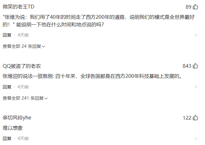 张维为说:我们用了40年的时间走了西方200年的道路,说明我们的模式是全世界最好的!