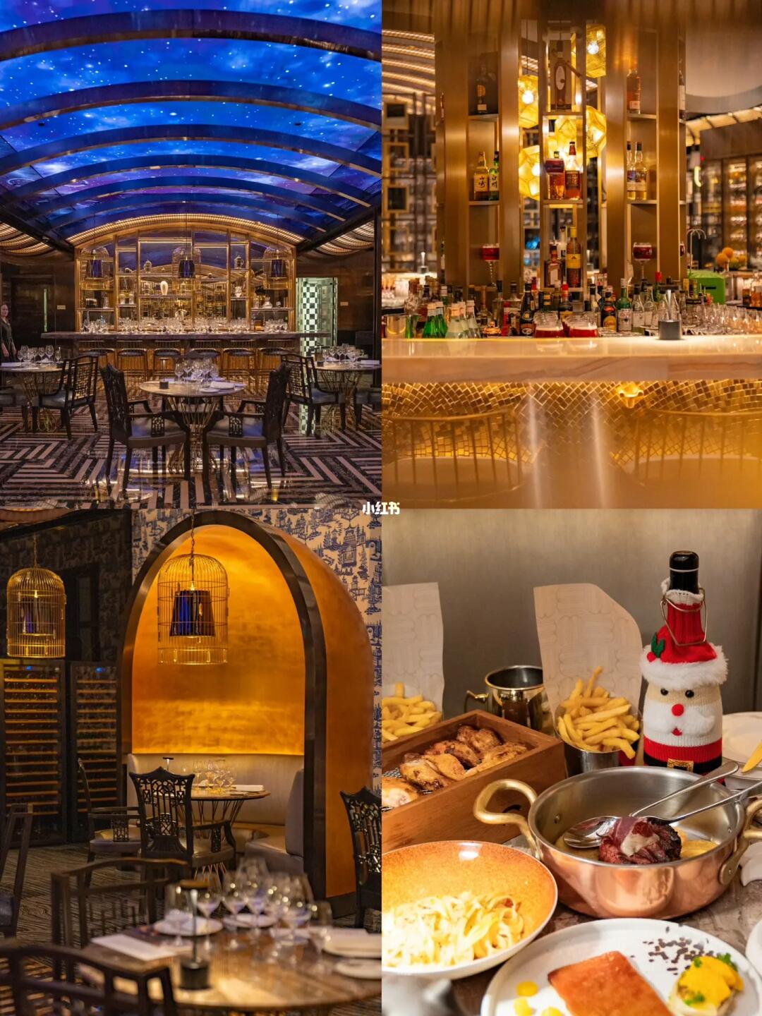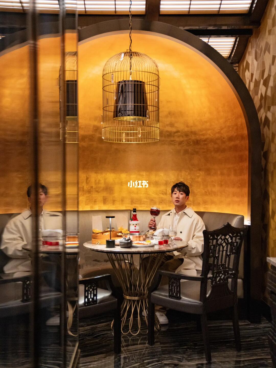时尚大师老佛爷设计的葡国菜餐厅,黑白金的用餐环境高级又神秘,融合了如中式鸟笼等东方元素,拍照很出片。点上一杯限定圣诞老人造型的红酒,将用餐仪式感拉满~