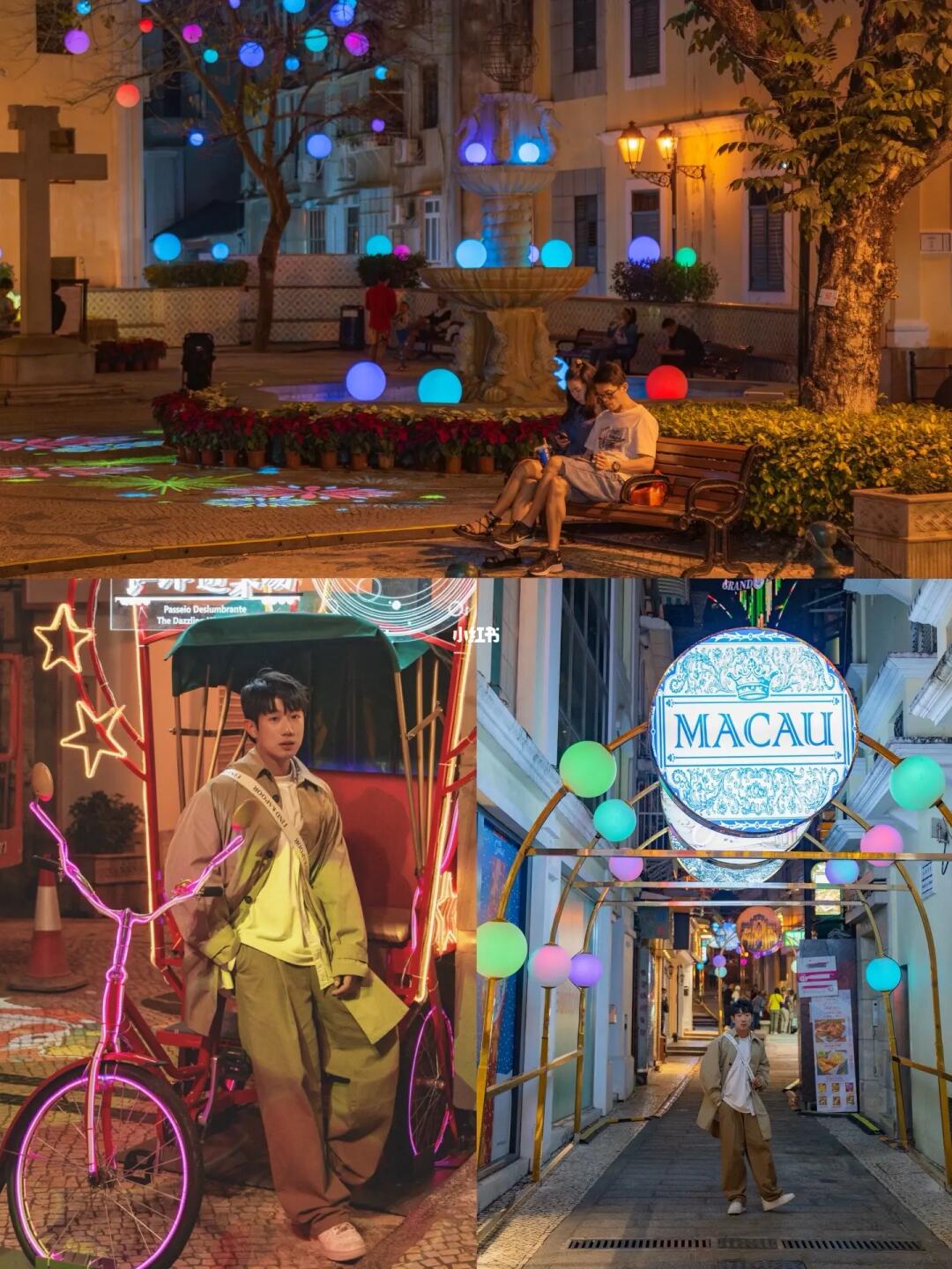 🎄澳门正值圣诞季,街头小巷各处都能看到各种圣诞装置,「幻彩耀濠江」几个打卡点都十分有氛围,乘坐 “新葡京酒店”线路的穿梭巴士,向新马路方向走走就可以到达,大家去的时候可以打卡同款哦!