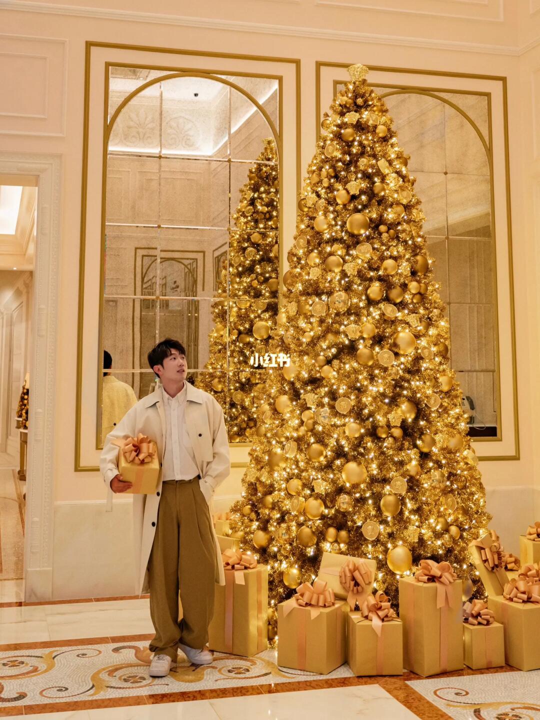 度假村内随处可见各色各样的圣诞树和礼物盒、灯饰,节日氛围直接拉满