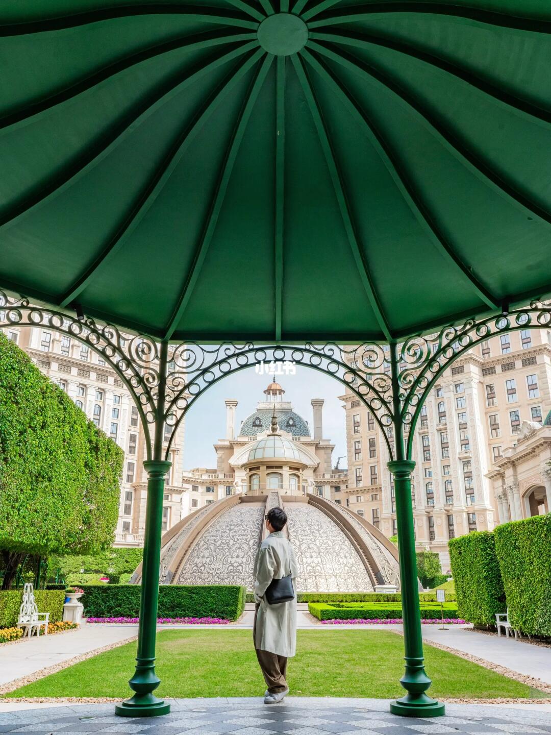 ✔喷泉走廊:站在喷泉前的走廊中,背景是巨型圆形穹顶,拍照很有皇家庄园感
