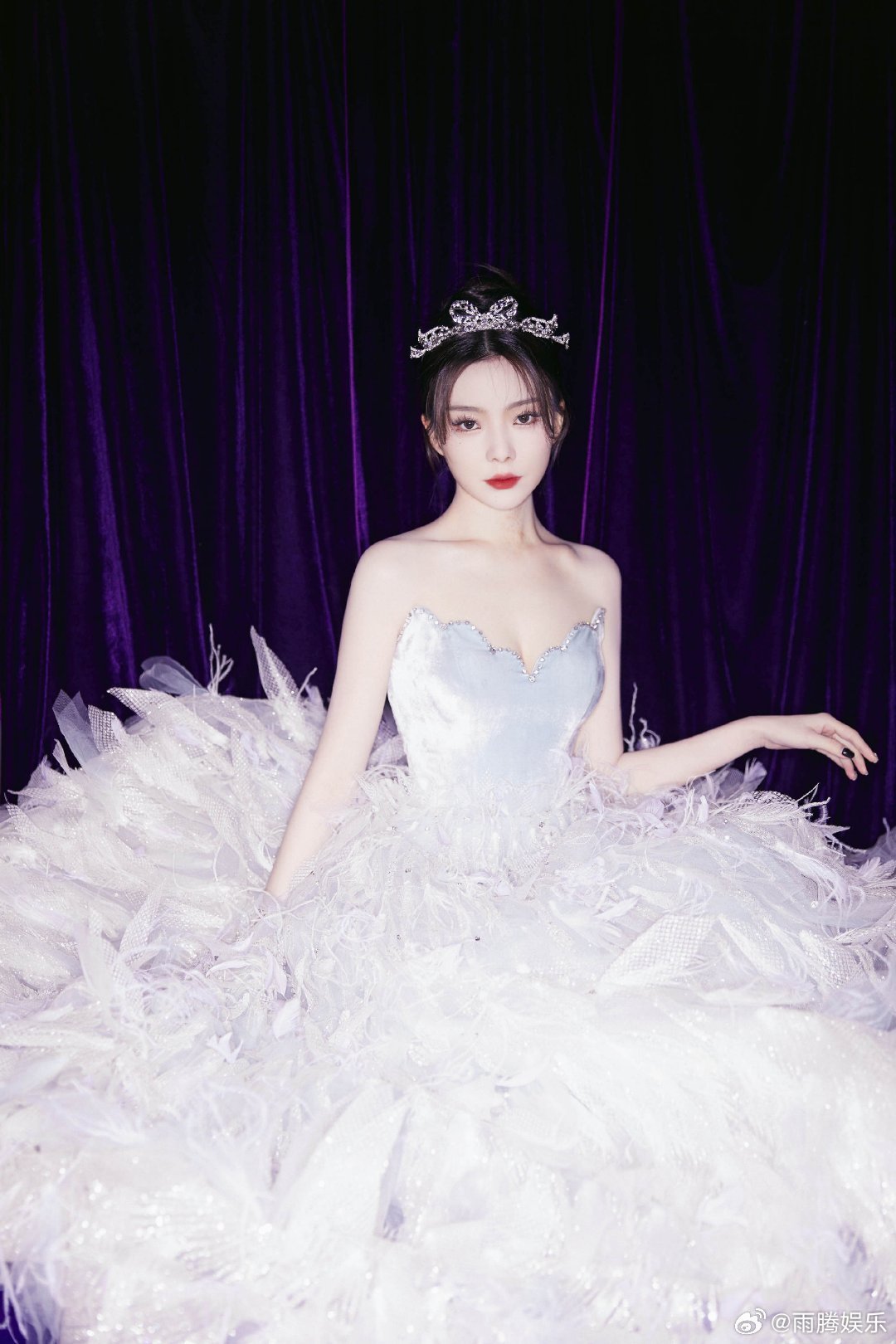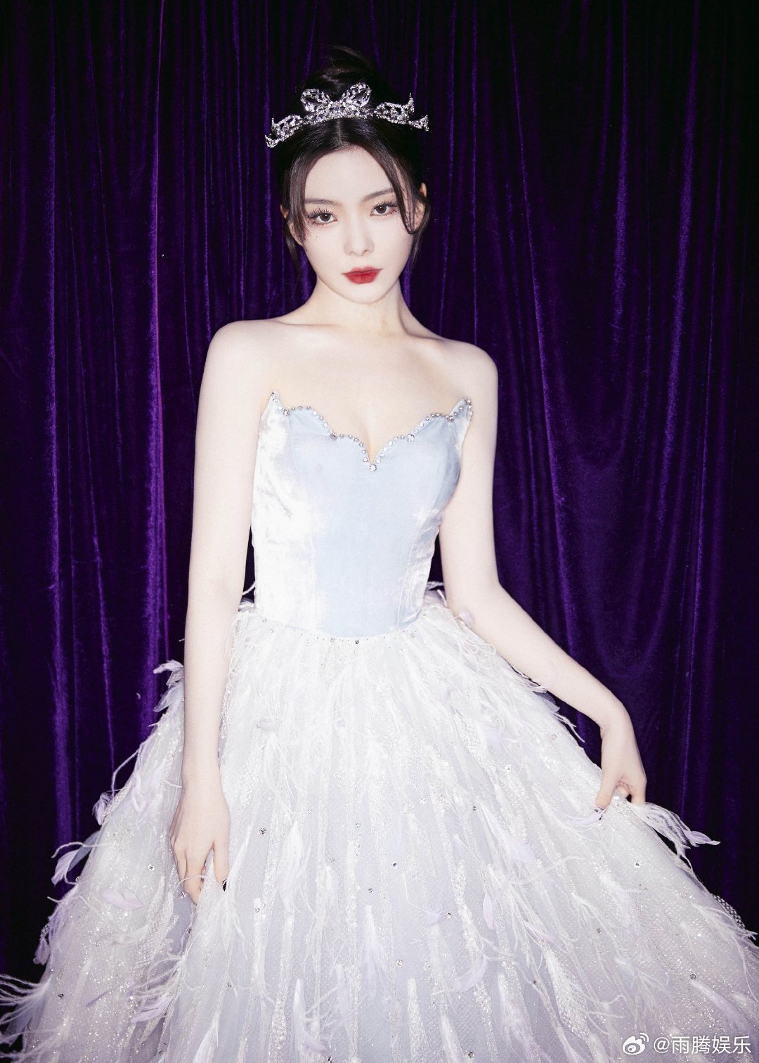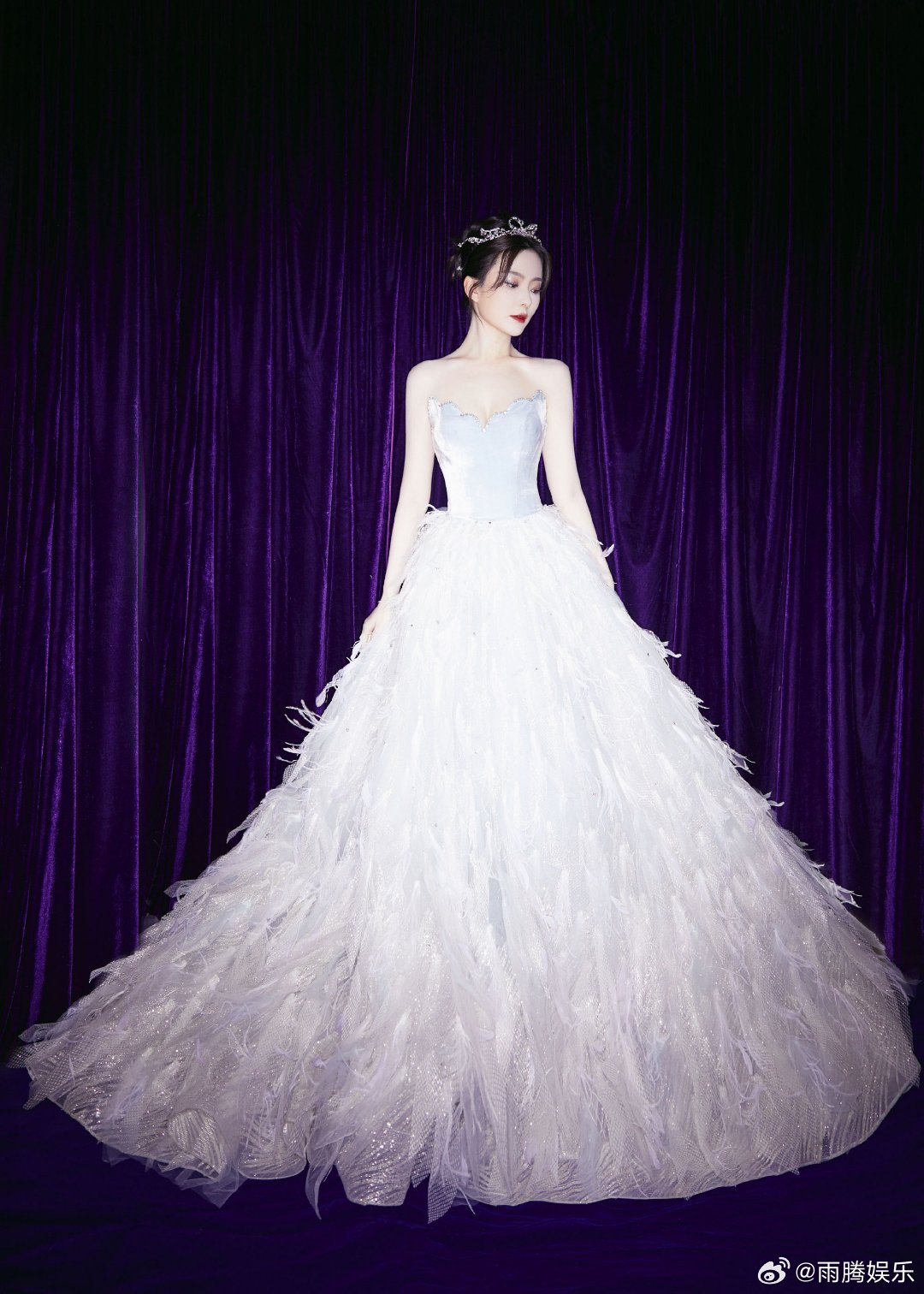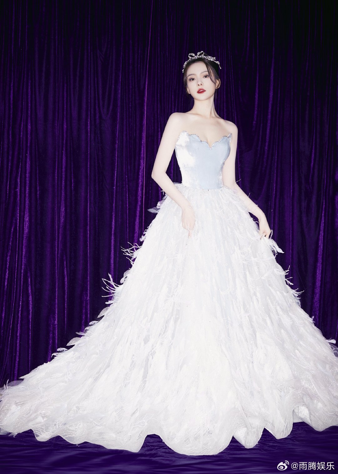 从曝光的返图来看,陈姐的状态也是非常不错。点钻皇冠配上浅色羽毛露肩长裙,给人的感觉是超甜美可爱。再加上美美的拍照pose,可谓是瞬间被圈粉。[心][心][心]