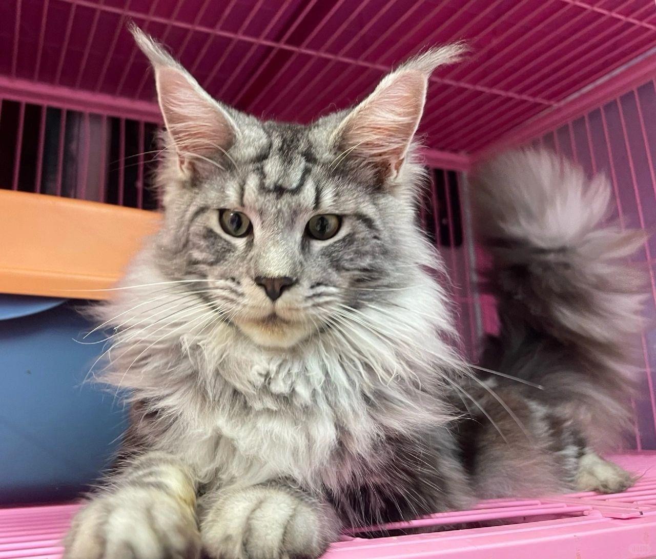 银虎斑缅因弟弟 蹲新家哦