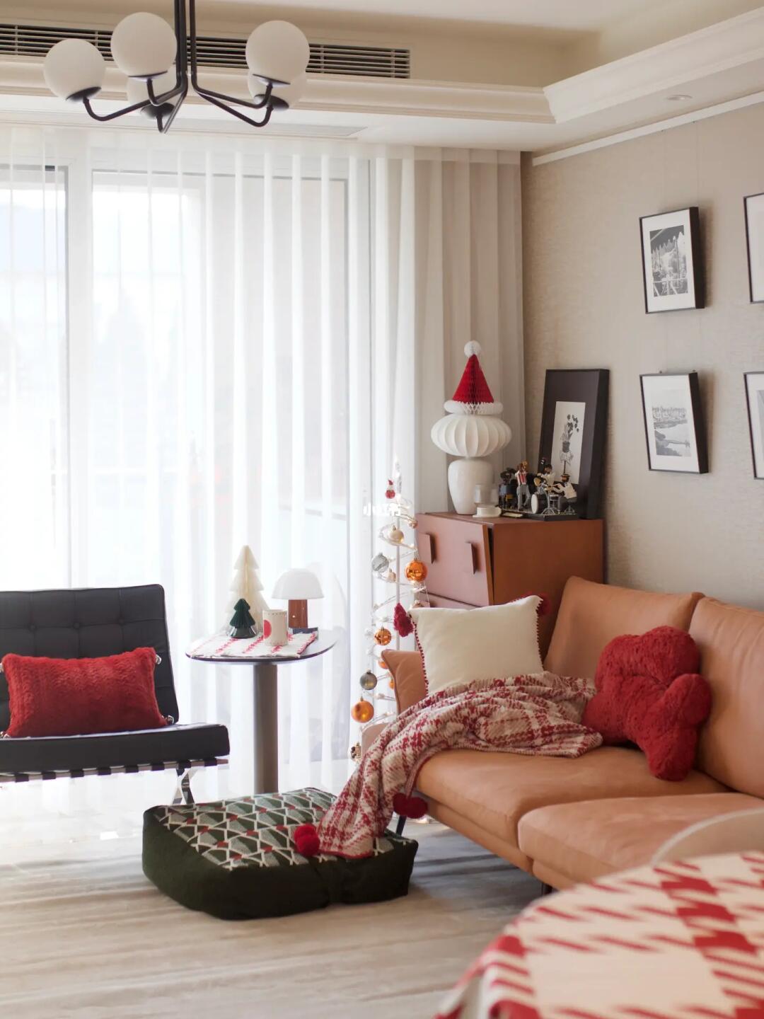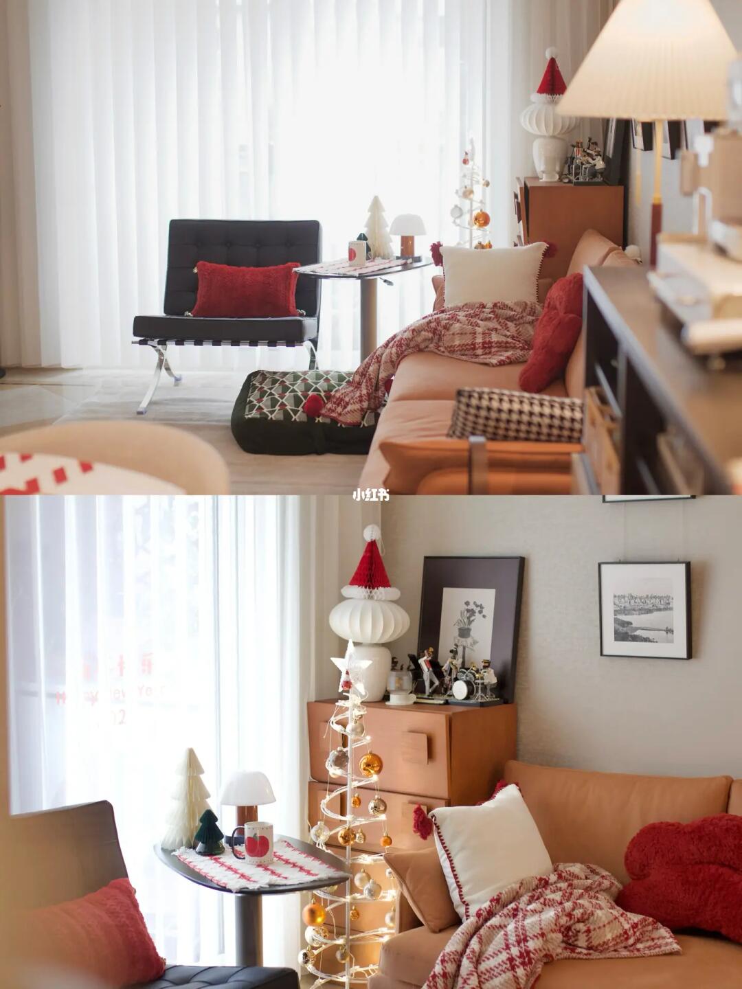 杭州的76平小家🏠 新家的第二个圣诞节🎄 | 没有超大圣诞树,也没有太多复杂的装饰。 但也用心布置了氛围感满满的搭配~ 毕竟普通人家的节日布置不会更换那么频繁。 圣诞~新年~过年, 红色桌布+布艺软装+各种小单品, 拿出去年的过气网红圣诞灯, 这次用红色系渲染出东西方节日的碰撞融合的感觉。 周末在家也能感受热闹氛围,欢迎来我家过节呀🎉