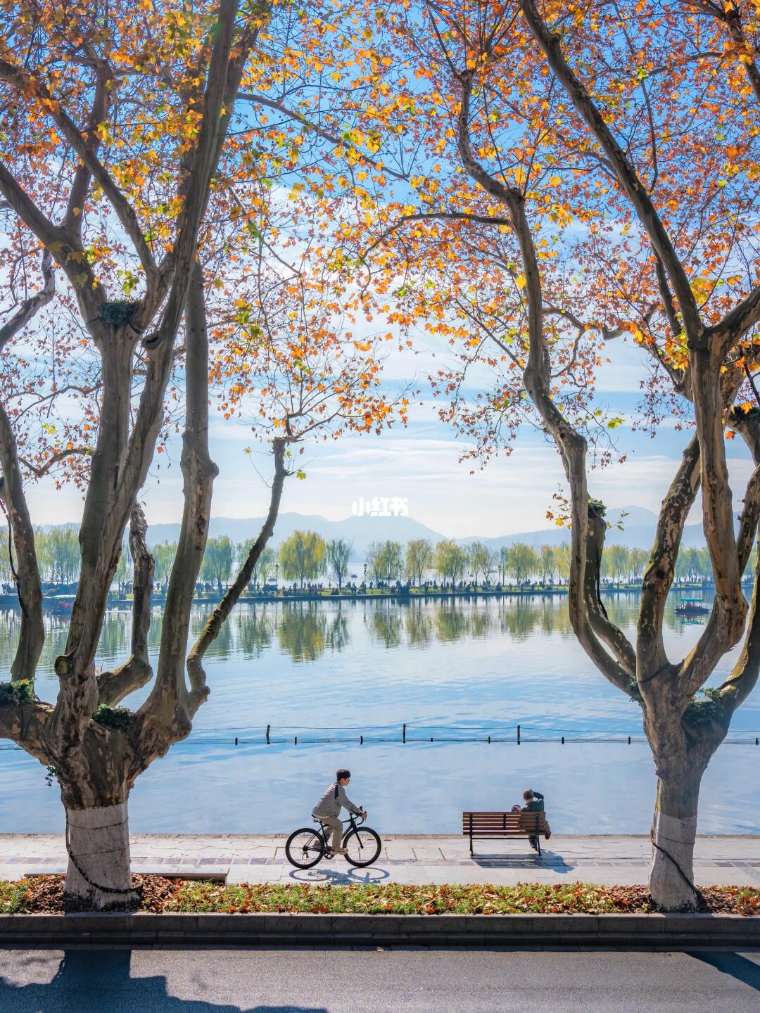 西湖真的太大,逛一圈真的好累,我更喜欢在晴天用骑行的方式探索它,秋冬的阳光落在身上别提多暖和~