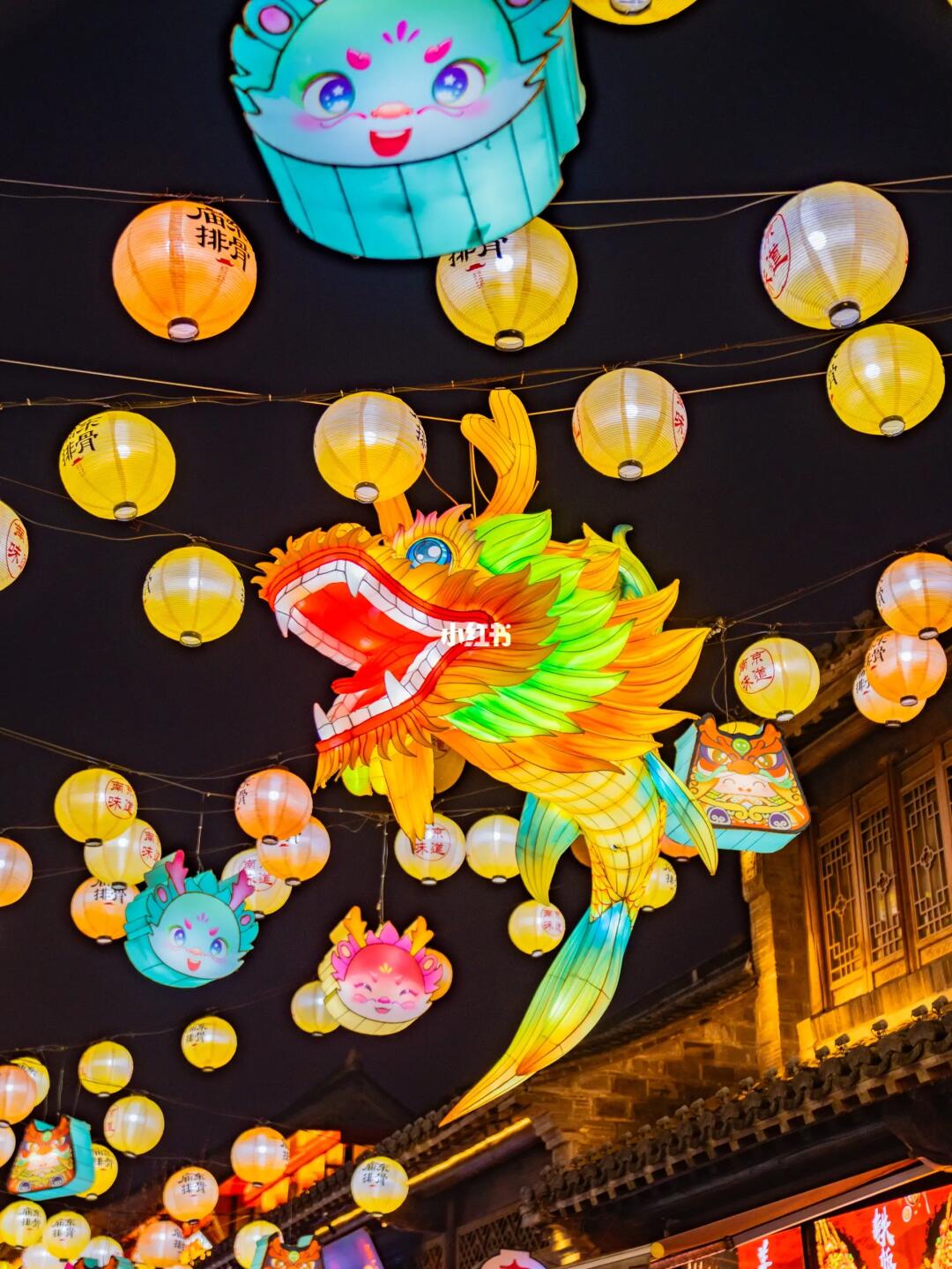 ▪龙年元素的彩灯挂满整条巷子,现在的老门东是南京zui有年味的地方