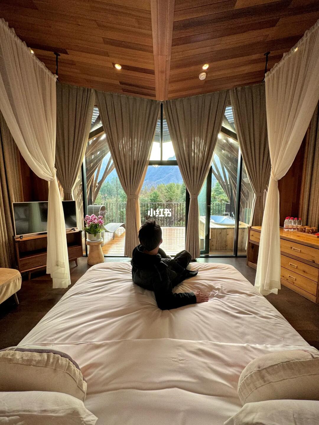 ▪️我最喜欢的是「飞机」房型,外形是一架飞机坐落山间,拍照体验都很出片,「绣楼树屋」也很特别,躺在床上,可以把眼前的山水尽收眼底,阳台上还有浴缸,可以在自然中惬意的泡澡~