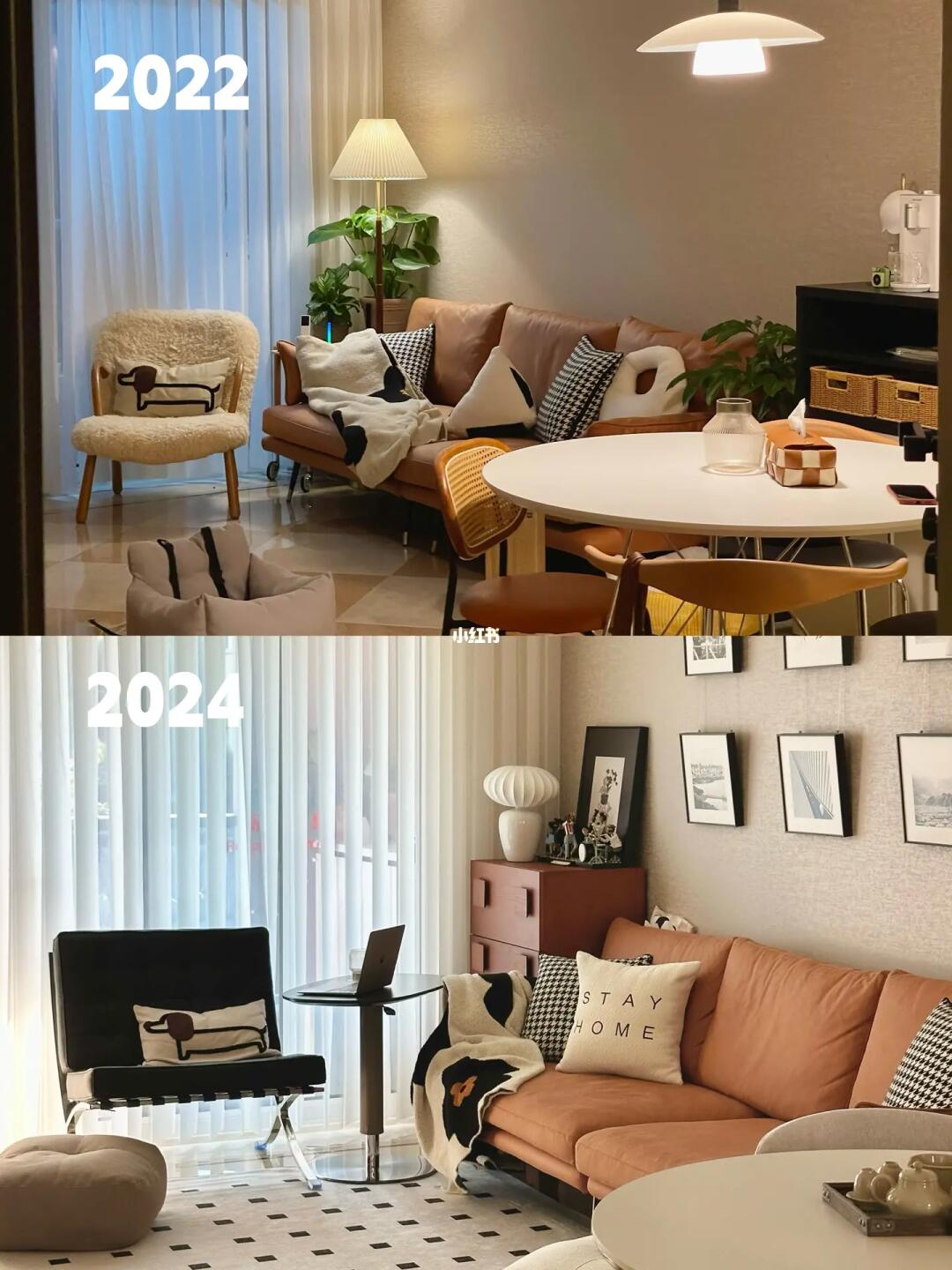 这个家好像陆陆续续装了两年, 对比才发现软装的重要性[偷笑R] 自己设计一点点搭配软装真的好有成就感~ 客餐厅两年的变化大家一起来找茬吧[doge]