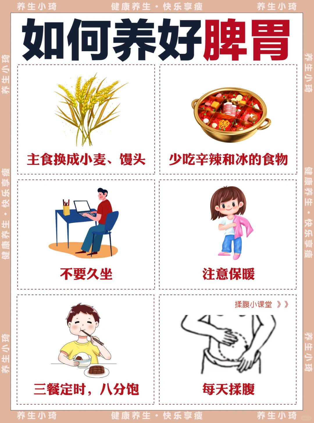 脾胃不好除了平时多吃富含膳食纤维的食物,作息规律不熬夜,经常锻炼外,我发现揉腹真的是绝绝子!每天揉一揉,肚子暖暖的,长期坚持脾胃自然就不跟你闹了[赞R]