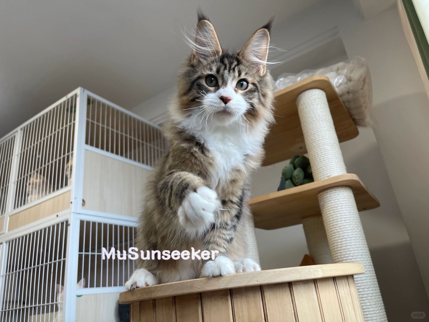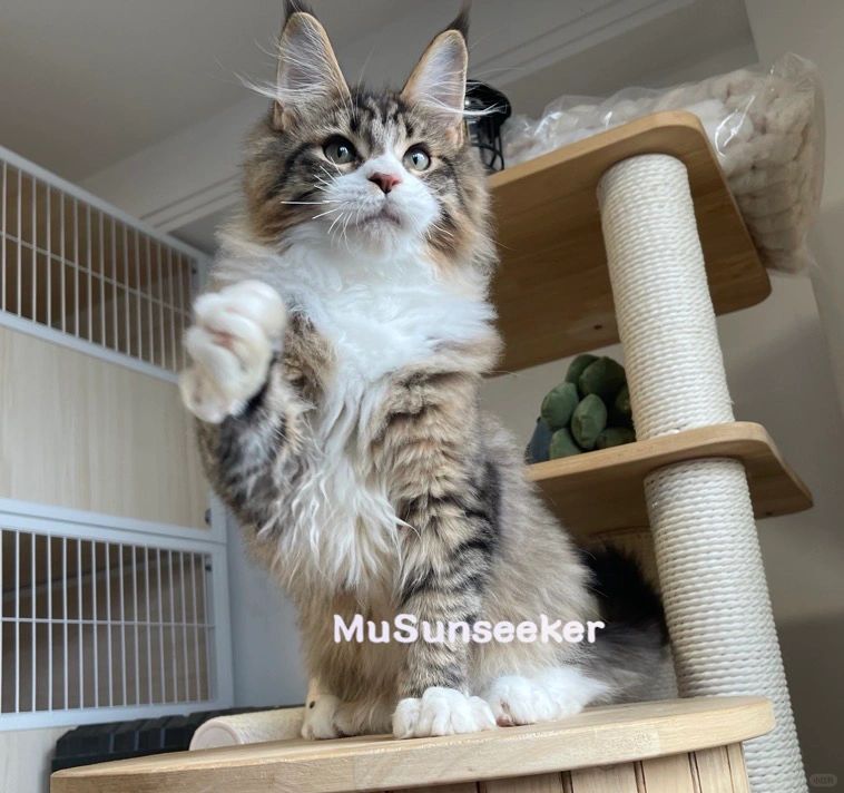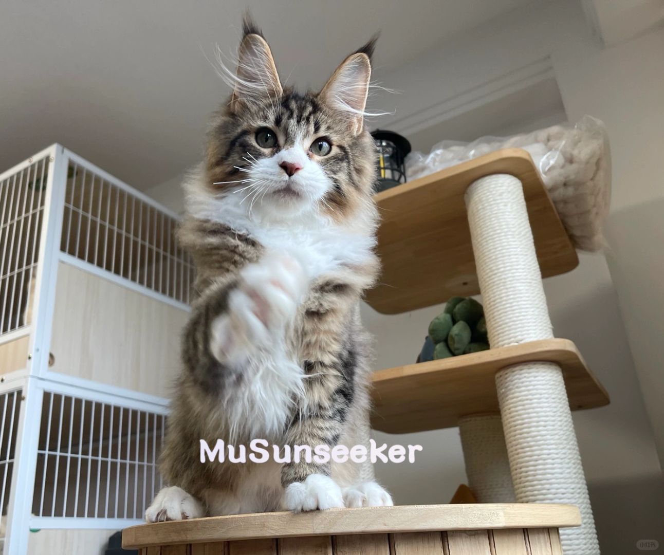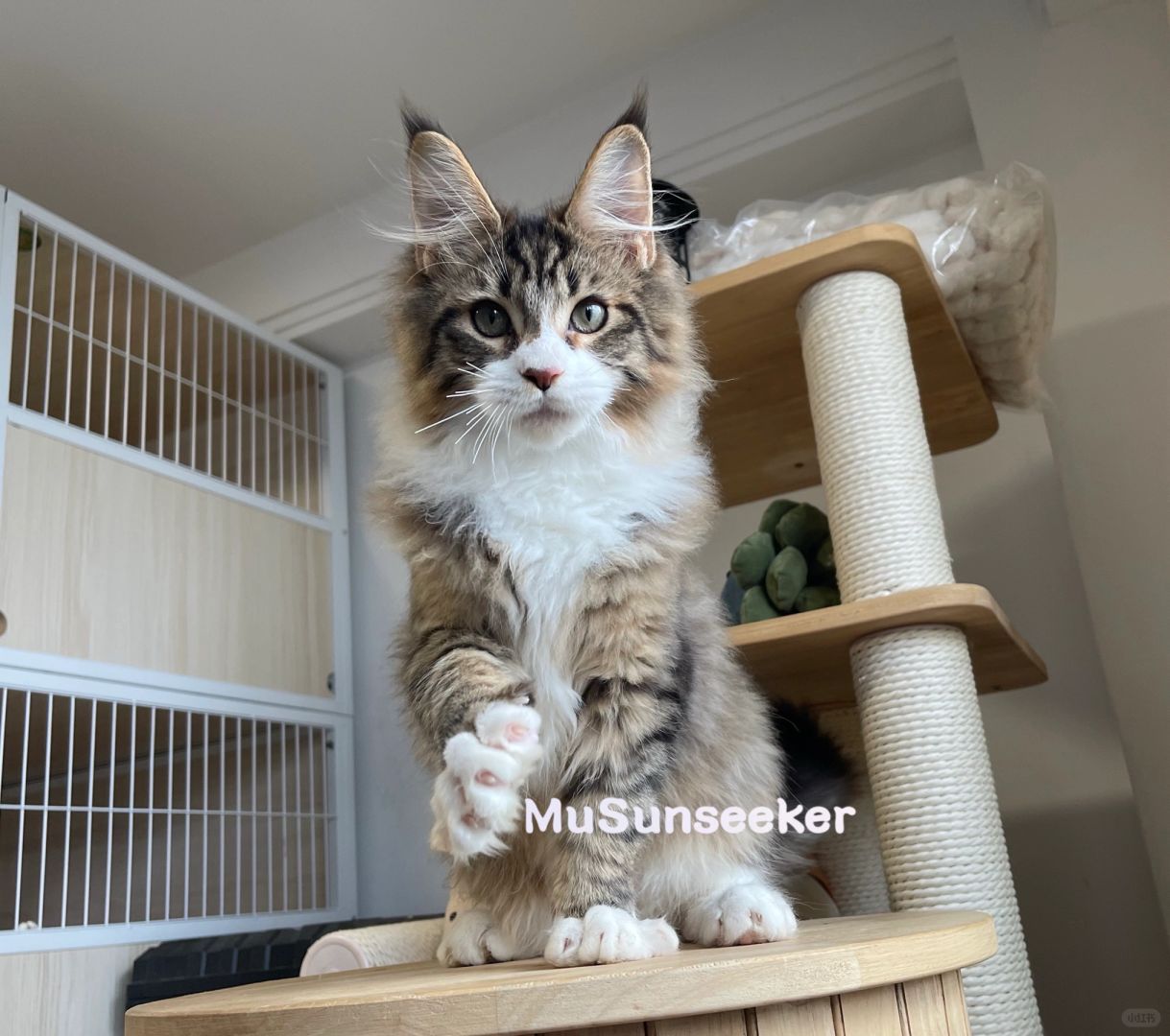 缅因|甜美系的棕虎斑加白缅因妹妹