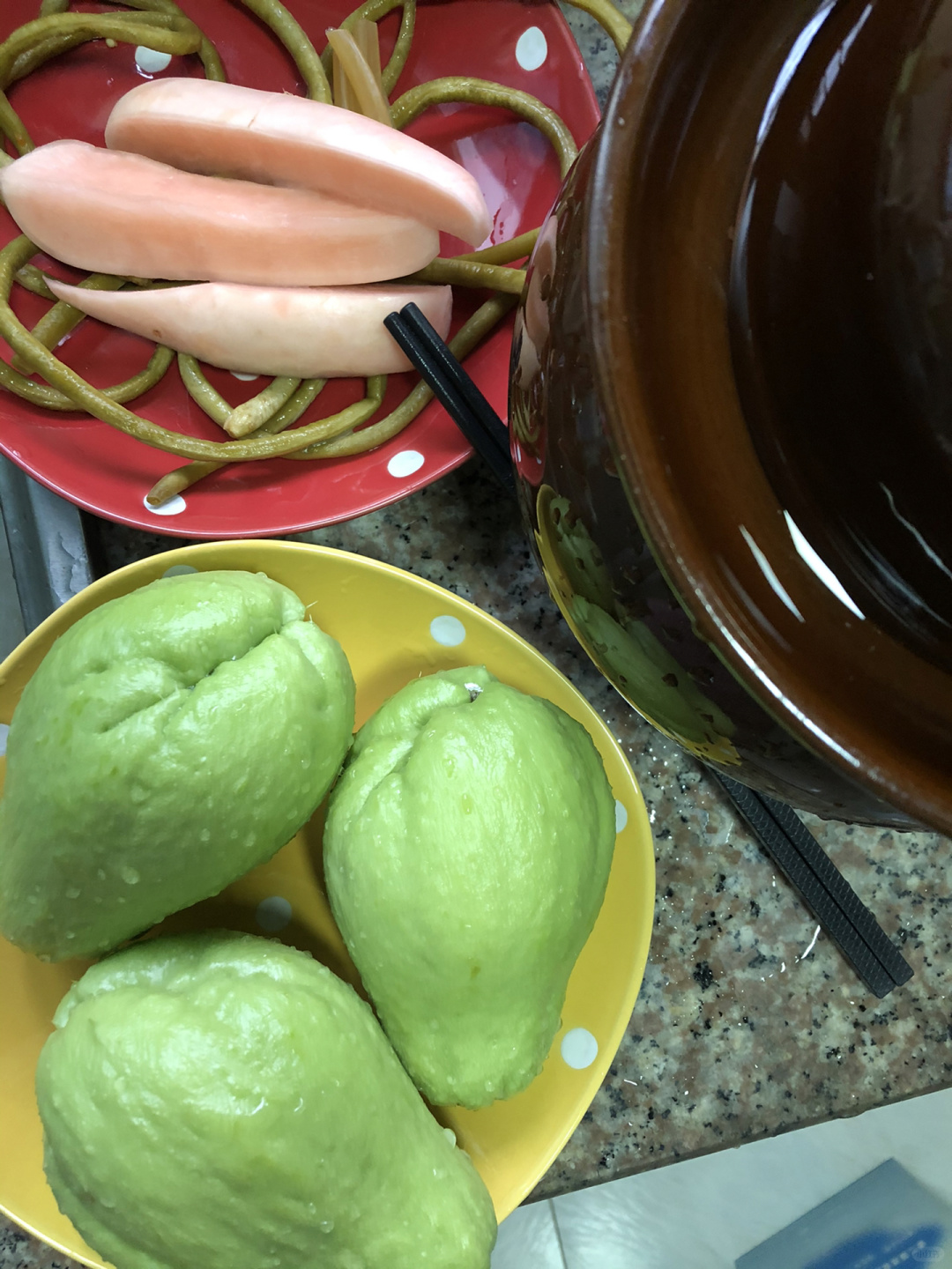 四川泡菜之佛手瓜 周末去山上摘了新鲜的佛手瓜,果断纳入泡菜坛子,期待味道……#四