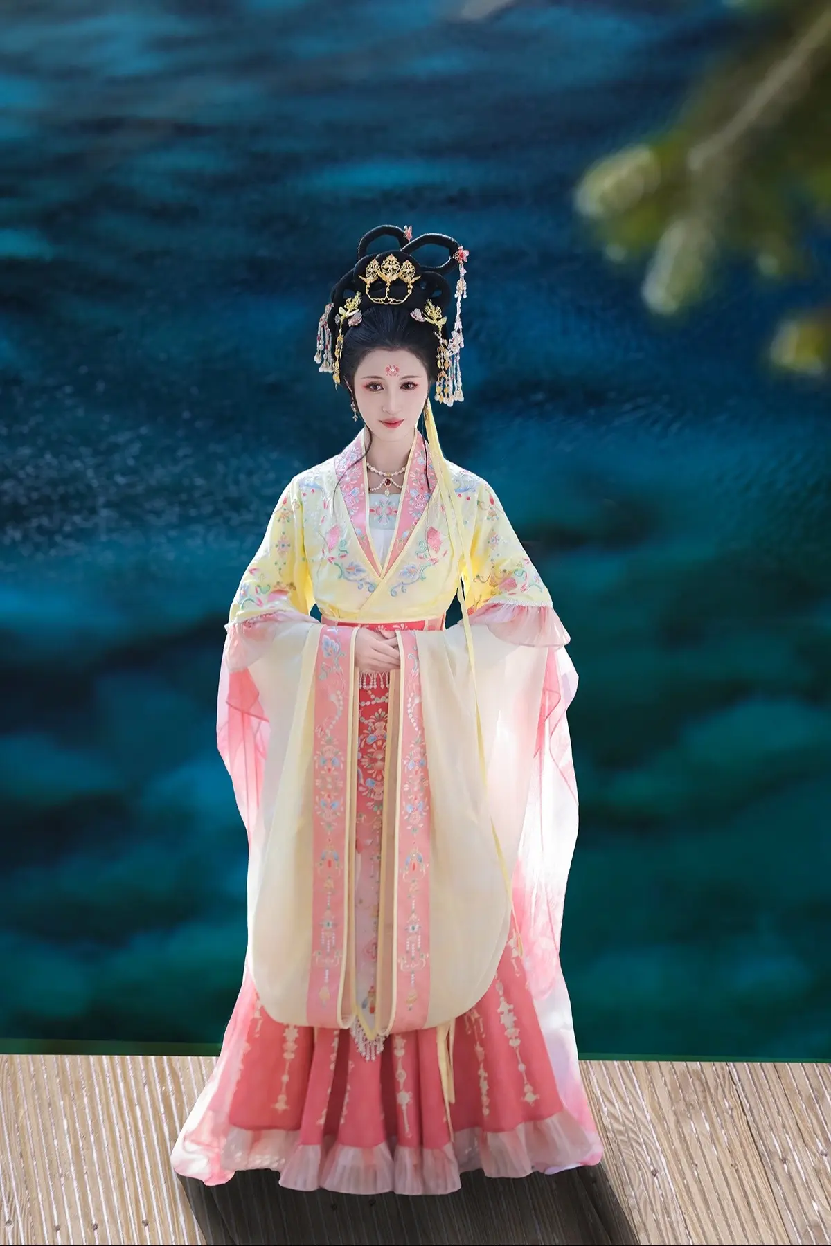 春游踏青版汉服。竹影摇窗试新罗,满庭芳菲染襟裙。
