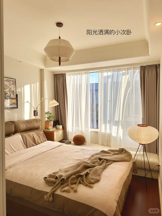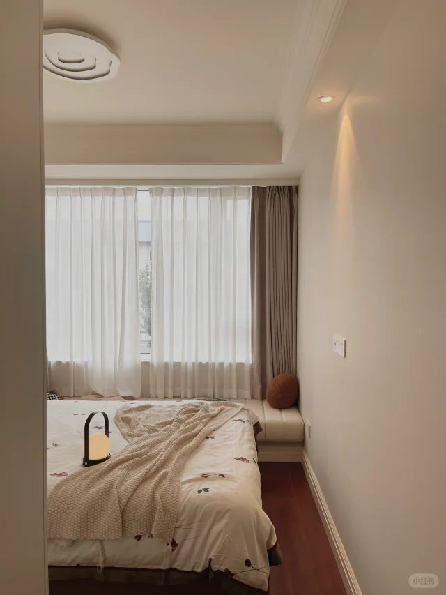 ▫️色调选择:棕色+奶茶色为主,搭配胡桃木等木色,床品搭配米白色系让整个空间不压抑。