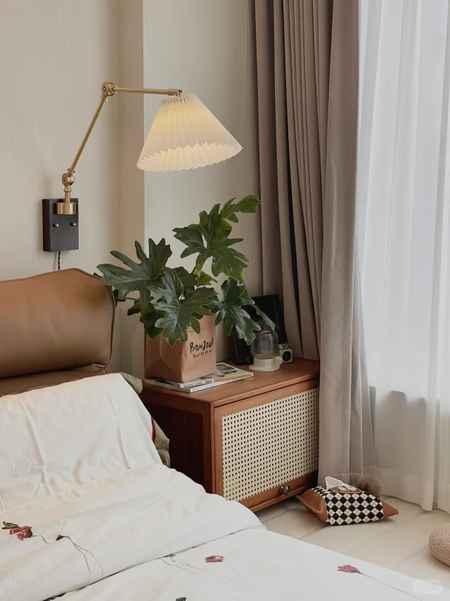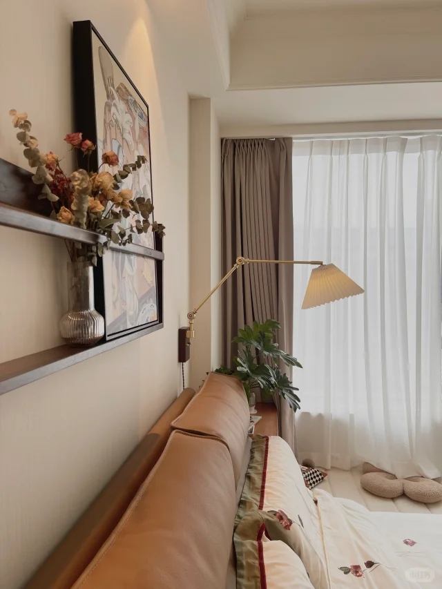 ▫️复古风元素的软装选择:金色的百褶壁灯,复古油画风装饰画自己绿植、自己做的干花、藤编的小物件、四件套等都是点睛的小元素。