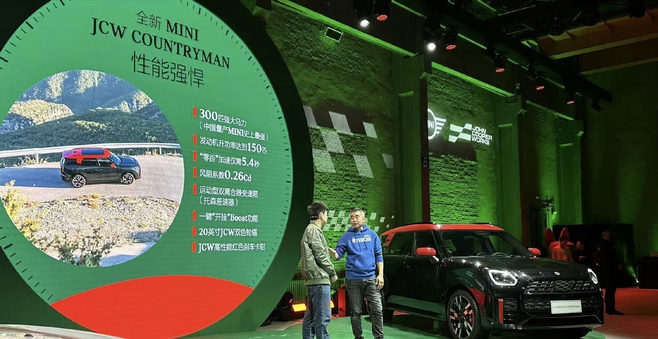 全新MINI JCW COUNTRYMAN上市,定价39.98万元,带您了解。 外观方面,新车保持了MINI的经典元素,如“四轮四角”的车身比例和米字旗LED矩阵式尾灯,同时在细节上进行了现代化的改进,例如车辆牌照位置的下移和尾门开口的上移设计,使得尾部看起来更加宽阔且有力。 在尺寸方面,新车的长宽高分别为4433mm、1843mm和1656mm,轴距为2692mm,这比前代车型有所增加,从而提供了更大的储物空间。内饰方面,新车配备了一块9.44英寸的圆形大屏幕,并采用了MINI最新的车机系统Mini Operating System 9,该系统提供了丰富的显示模式和交互体验。此外,新车还减少了物理按键,增加了圆形OLED触控屏,以及红色编织纤维装饰,提升了内饰的时尚感。 在数字化和个性化方面,MINI JCW COUNTRYMAN推出了8种“体验模式”,每种模式都有独特的用户界面设计。同时,这款车型还配备了HUD抬头显示,以及12个超声波传感器和4个环视摄像头,实现了L2级别的自动驾驶辅助功能。 动力方面,新车搭载了2.0升直列四缸涡轮增压发动机,经过JCW调校,升功率达到了150马力,结合ALL4智能四驱技术,零百加速时间5.4秒。【来自懂车帝车友圈】