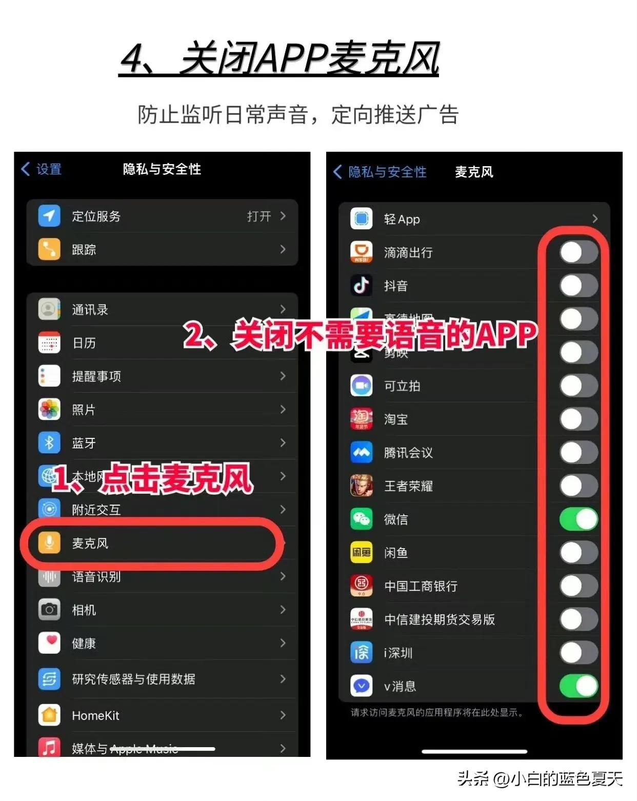 早点关闭,你的iPhone 手机正处于被监听中!日常我们会发现跟朋友聊天谈事情或者其他的 话题,转头就发现你的手机某款 APP就给你推送了相关的内容,!如今的个人隐私偷听简直无孔不入,今天写了如何关闭 ihone 手机监听和推送