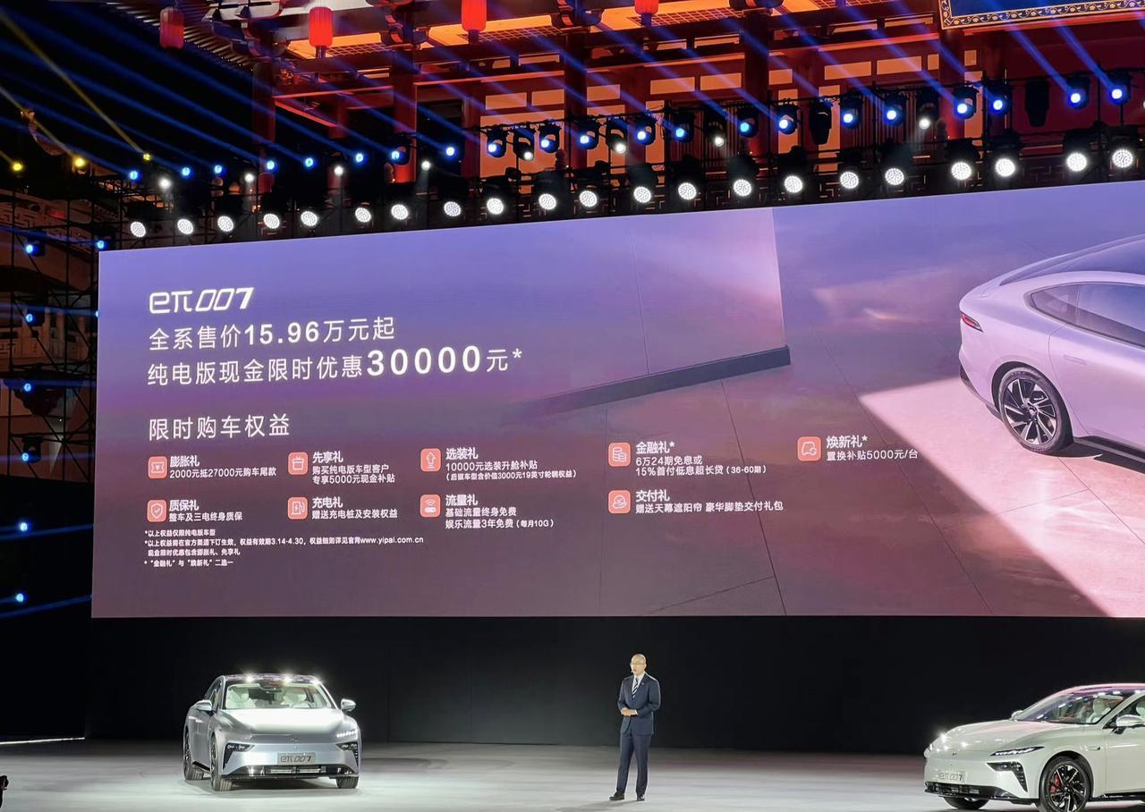 东风奕派eπ007正式上市,起售价定在了15.96万,与之前官方预售价保持一致,提供四种不同配置选项,东风汽车还透露,在未来三年内,将有11款新产品陆续推出,其中包括奕派、风神和纳米三个品牌。此外,公司计划在2026年将固态电池技术应用于车辆,预计续航里程将超过1000公里。 新车的上市还伴随着一系列优惠政策,如2000元可抵扣27000元的购车尾款,以及针对纯电动车型的5000元现金补贴等。在上市发布会上,东风奕派还举行了首批车主的交付仪式,并宣布新车将从3月14日起正式交付。 eπ007在外观设计上采用了分体式大灯组,配备了LED日间行车灯和一体化的散热开口,车辆还特别配备了剪刀门和蝶影光毯投影灯,后者提供迎宾、浪漫、战斗三种投影图案,车身侧面呈现溜背式轿跑设计,同时实现了0.209Cd的低风阻系数。车辆还装备了隐藏式门把手和无框车门,车身尺寸为4880/1895/1460mm,轴距达到2915mm。 内饰方面,eπ007配备了可翻转的全液晶仪表盘和双辐式多功能方向盘,中控台中央则安装了15.6英寸的悬浮式多媒体显示屏,座椅采用有机硅软包材质,智能配置包括高速NOA领航辅助驾驶和LAPA超视距记忆泊车等。 在智能驾驶方面,eπ007标配了前向碰撞预警、AEB自动紧急制动、交通标识识别等安全功能,以及全景影像和透明底盘等辅助系统。更高级别的驾驶辅助系统则作为选配提供,包括31个智能感知硬件和相关软件订阅服务。 动力方面,eπ007提供增程版和纯电版两种选择。增程版搭载1.5L增程器和后置电机,最大功率160kW,峰值扭矩310N·m,配备28.39kWh磷酸铁锂电池,0-100km/h加速时间为7.2秒,CLTC工况纯电续航里程200km,总续航里程1200km。纯电版则根据配置不同,电机最大功率从160kW到400kW不等,电池容量从56.83kWh到70.26kWh,CLTC工况续航里程从530km到620km,加速时间从6.8秒到3.9秒不等。 作为市场上新来选手,大家对eπ007的第一印象如何呢?【来自懂车帝车友圈】