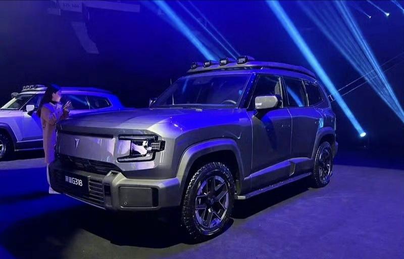 【深蓝G318正式发布 定位超级增程硬派SUV】新车定位于硬派SUV,采用了新蓝鲸动力平台下的超级增程动力,由1.5T増程器和高性能电机组成,并配备金钟罩电池,新车预计5月底正式上市,预计售价在30万元左右。 深蓝G318采用了非常硬朗的造型设计,整体轮廓极具力量感,前脸采用了赛博金属的无隔栅面甲,C字型能量灯组辨识度非常高。前保险杠宽大粗壮,硬派范儿十足。车顶行李架与车顶射灯一体化设计,硬朗利落。专业越级载重,静态下载重300KG,动态载重可达80KG。【来自懂车帝车友圈】