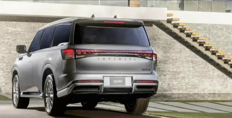 【#2024纽约车展# 全新英菲尼迪QX80亮相】新车整体设计灵感来自QX Monograph概念车,定位全尺寸SUV。外观方面,新车采用了分体式大灯组,上方的LED日间行车灯采用列队式布局,点亮后具有较高的辨识度。同时,我们还能看到,新车前格栅将会采用大尺寸设计,其上方还将有镀铬装饰条将两侧LED灯组相连接,形成贯穿式造型,提升车头视觉宽度。此外官方还表示,新车还将搭载主动式进气格栅,进一步降低空气阻力,提升燃油经济性。 动力方面,新车换装3.5T双涡轮增压V6发动机,该发动机最大功率可达456马力,峰值扭矩699牛·米,传动系统匹配9速自动变速。此外,新车还搭载自适应阻尼电子空气悬架,停车时悬架会自动降低。【来自懂车帝车友圈】