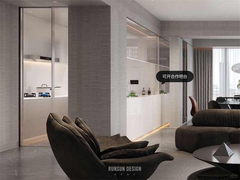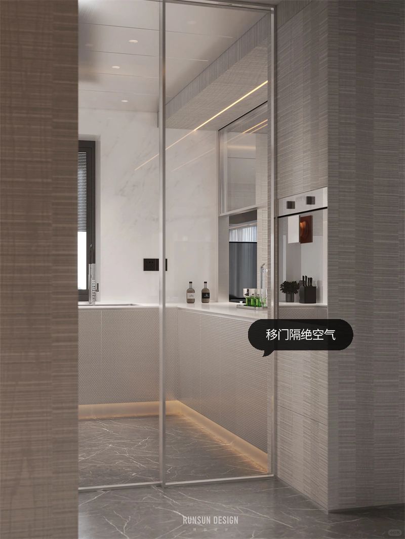 ADDRESS. 温州时代滨江上品私宅 本案业主是一名建筑从业者,对家的期望是希望把家打造成“如同顺遂的工作般熟悉的感觉”。考虑到业主平时的生活习惯,我们采用新式的可开合设计,打造可开合式的新式厨房,以建筑门窗的思维构造厨房,反而让厨房台面瞬间变身品酒最佳小吧台,无论是中餐还是西餐都能完美驾驭,也不怕油烟味在家中弥漫[派对R]