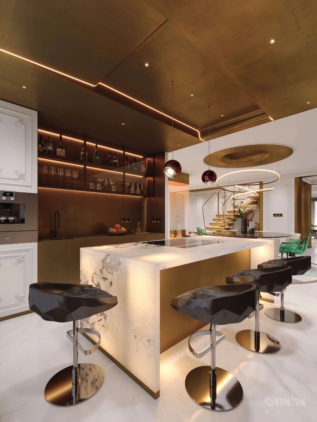 3米高挑空配上5米长岛台,发光厨房也能小酌