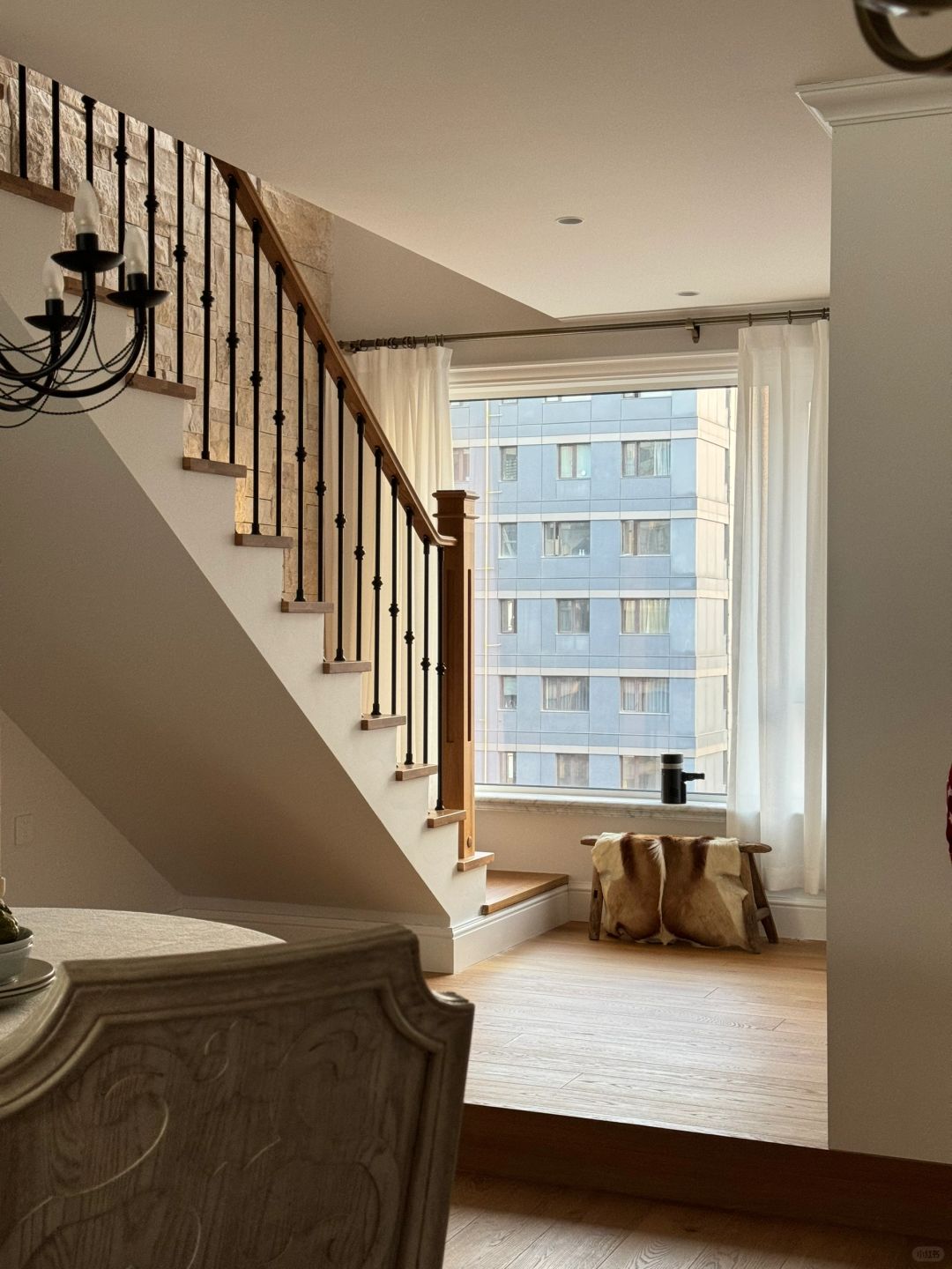 原木搭配浅色,木制搭配布艺;做旧的家具,铁艺吊灯与灯火闪烁的烛台,无一不显示着这古朴的美式浪漫~