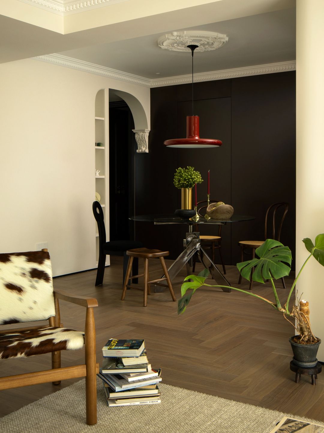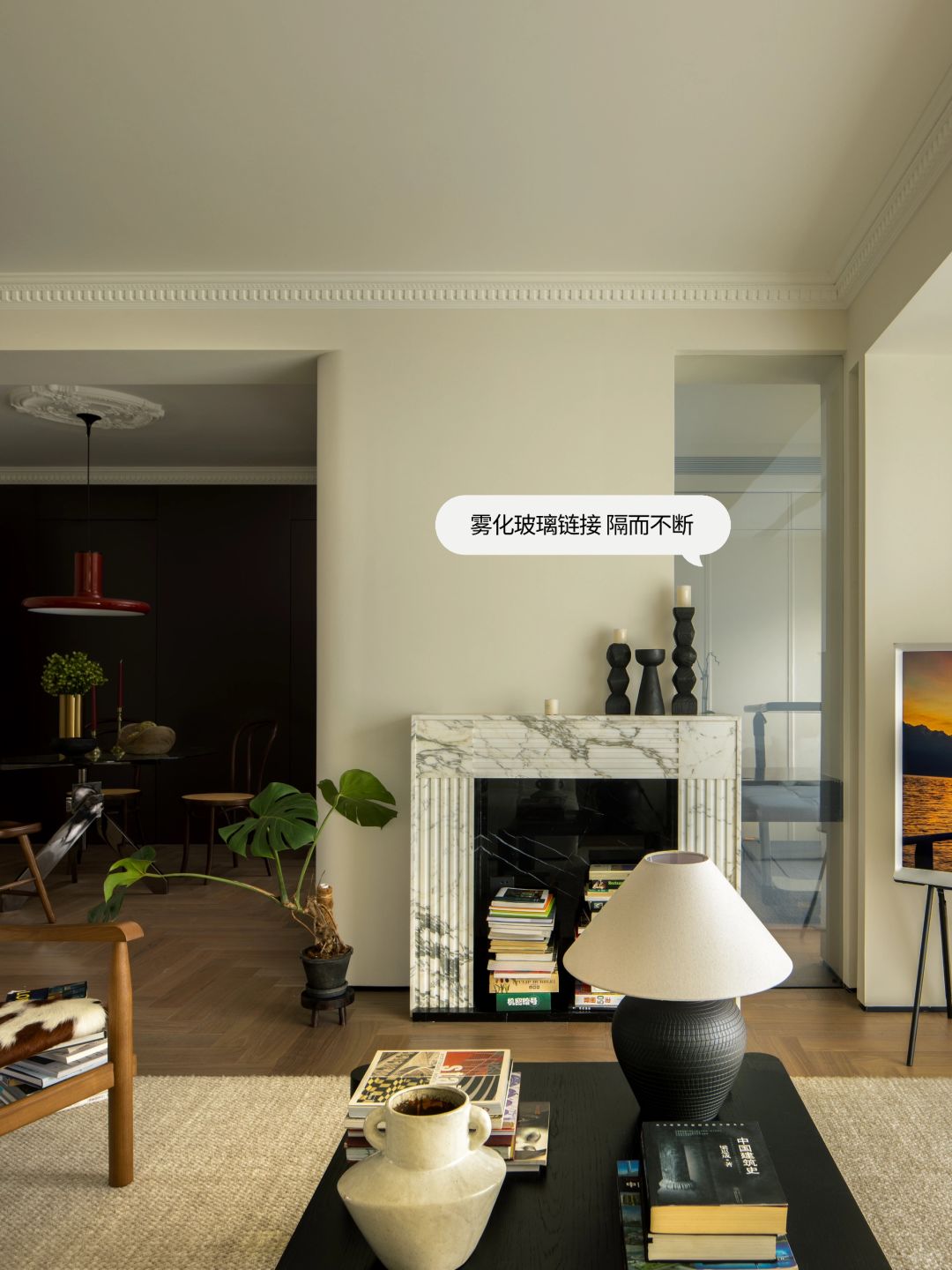 恰到好处的拱形设计、隔而不断的雾化玻璃、细腻精致的雕花线条、美观大气的石膏灯盘……一点点细节点缀了家的复古氛围,每个角落都充斥满浪漫气息。这样静谧而精致的小家,是我用心打造出的乌托邦啊~