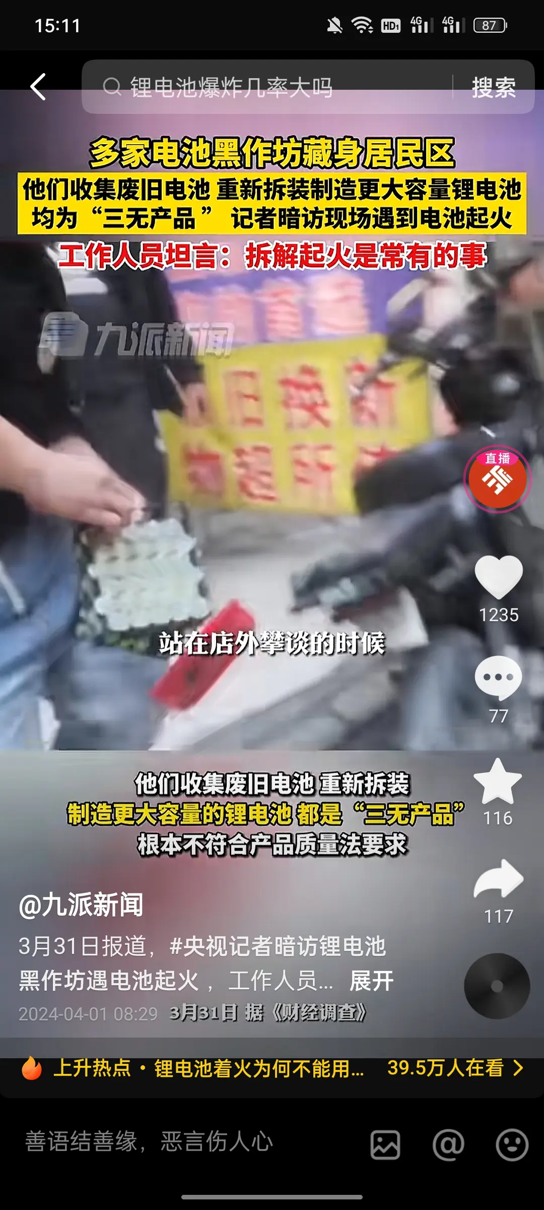 经常发生电动车起火的事故,可能就是因为这些三无产品。