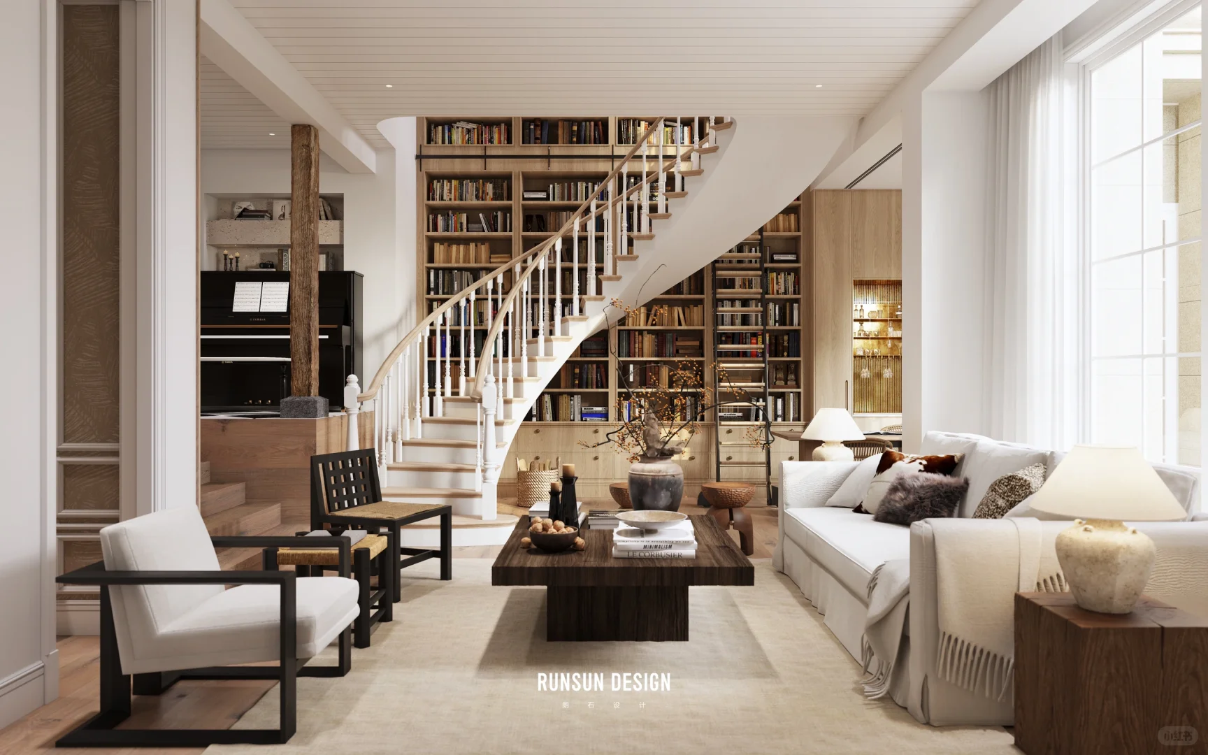 NEWCASE.温州香缇半岛私宅 我是麻瓜没错啊,可我的家会魔法[赞R] 业主钟爱美式乡村的自由松弛、休闲自然,能放松紧绷的心情,在钢筋水泥的城市中得到一隅内心栖息之处。家中没有过多的硬装设计,用石材与木饰面来组装出空间的轮廓;留白部分用生活的精彩来点缀填充。跃层空间自由发挥之处用卷卷书本装满,6米长的高度让家瞬间化身小型图书馆~正是“屋头荼醾定过墙,满窗日色文书香。”