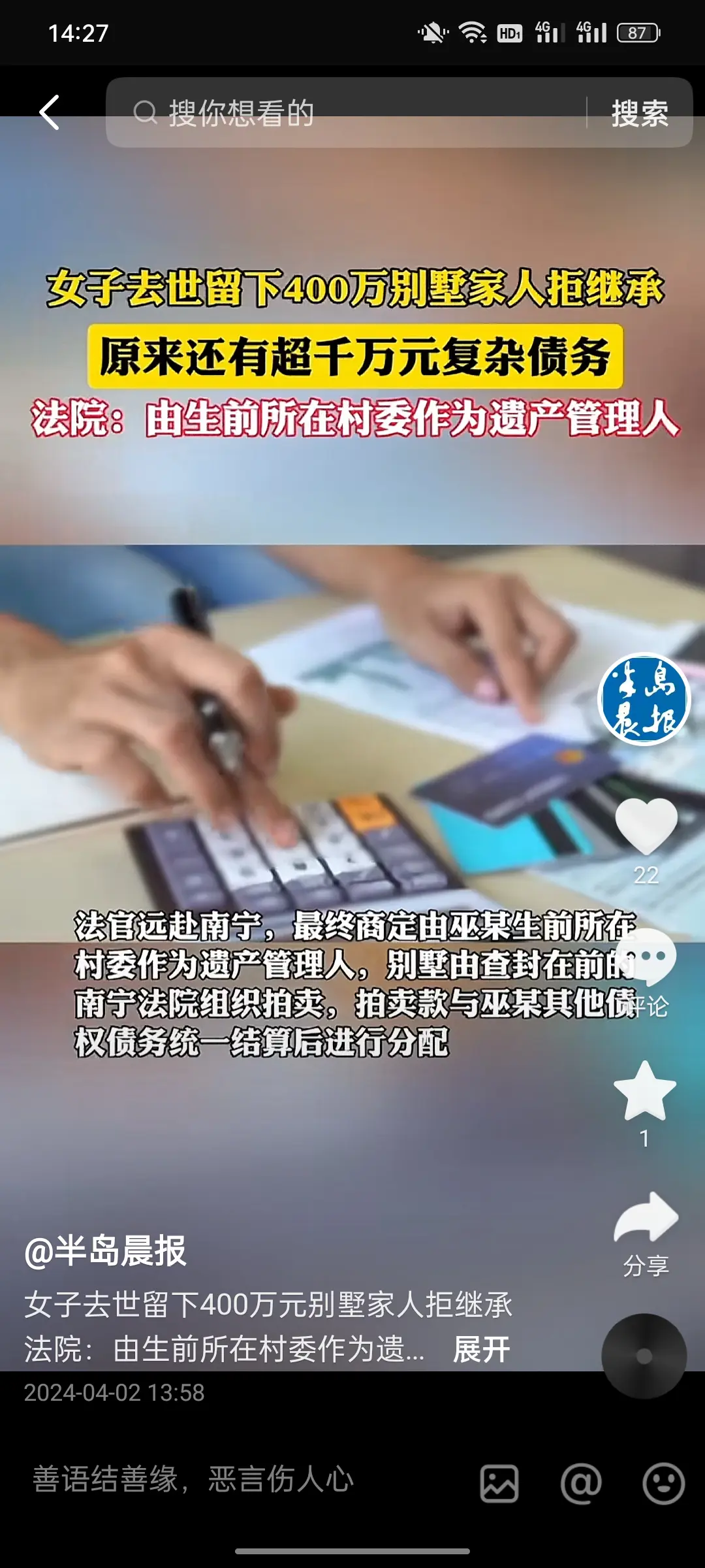 有1000万的债务,没人继承400万房产就能理解了。