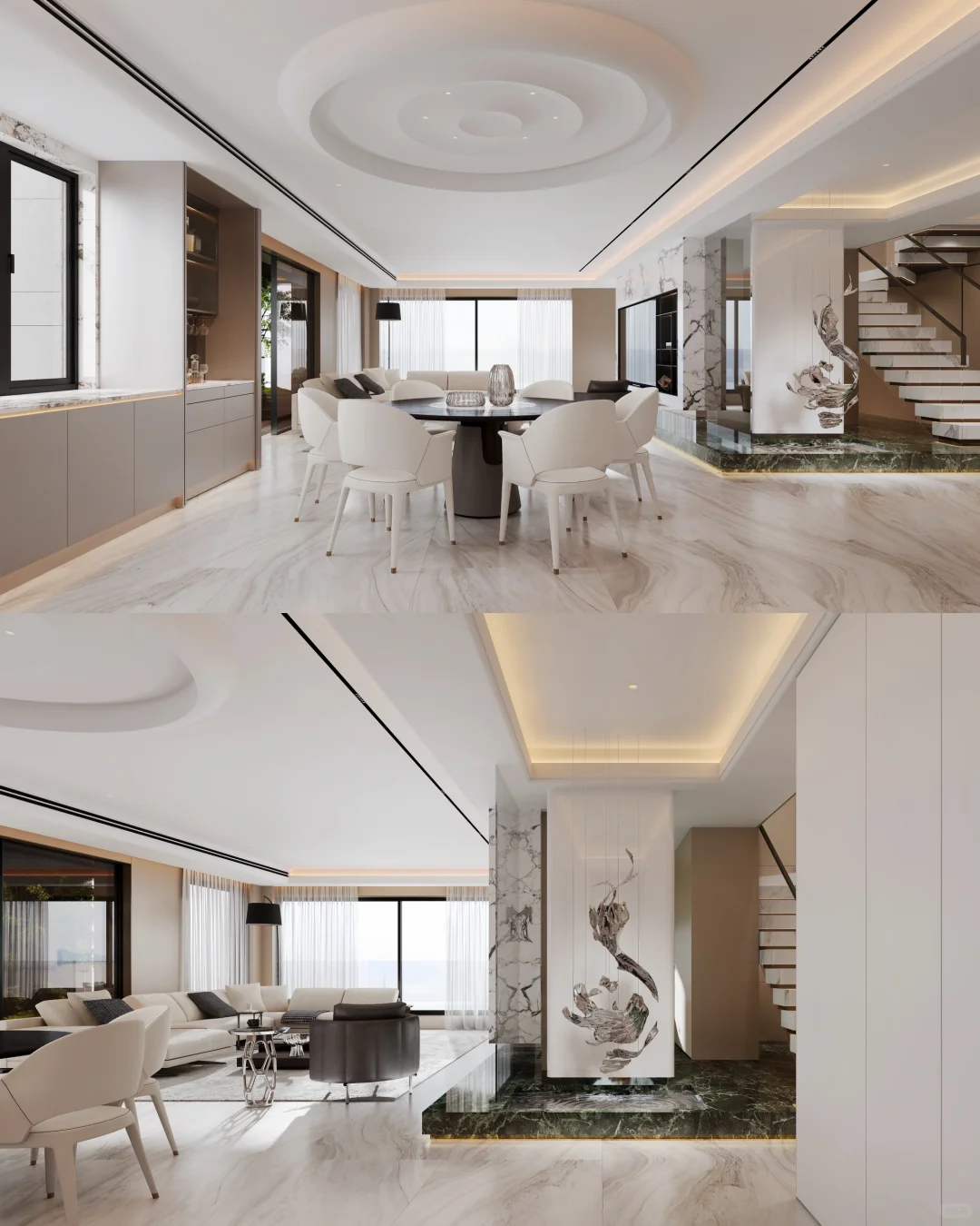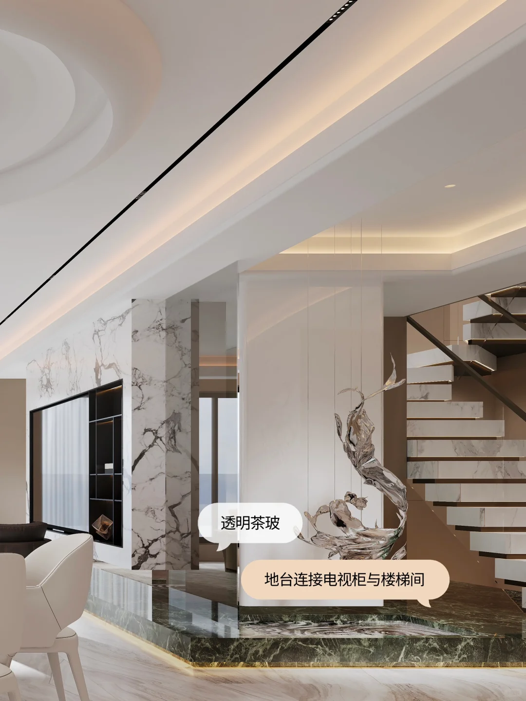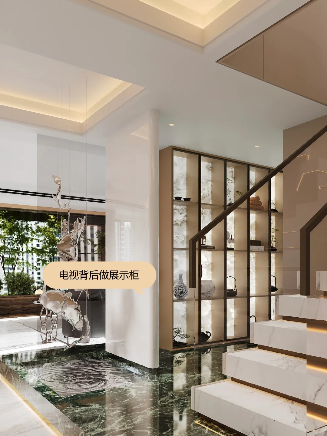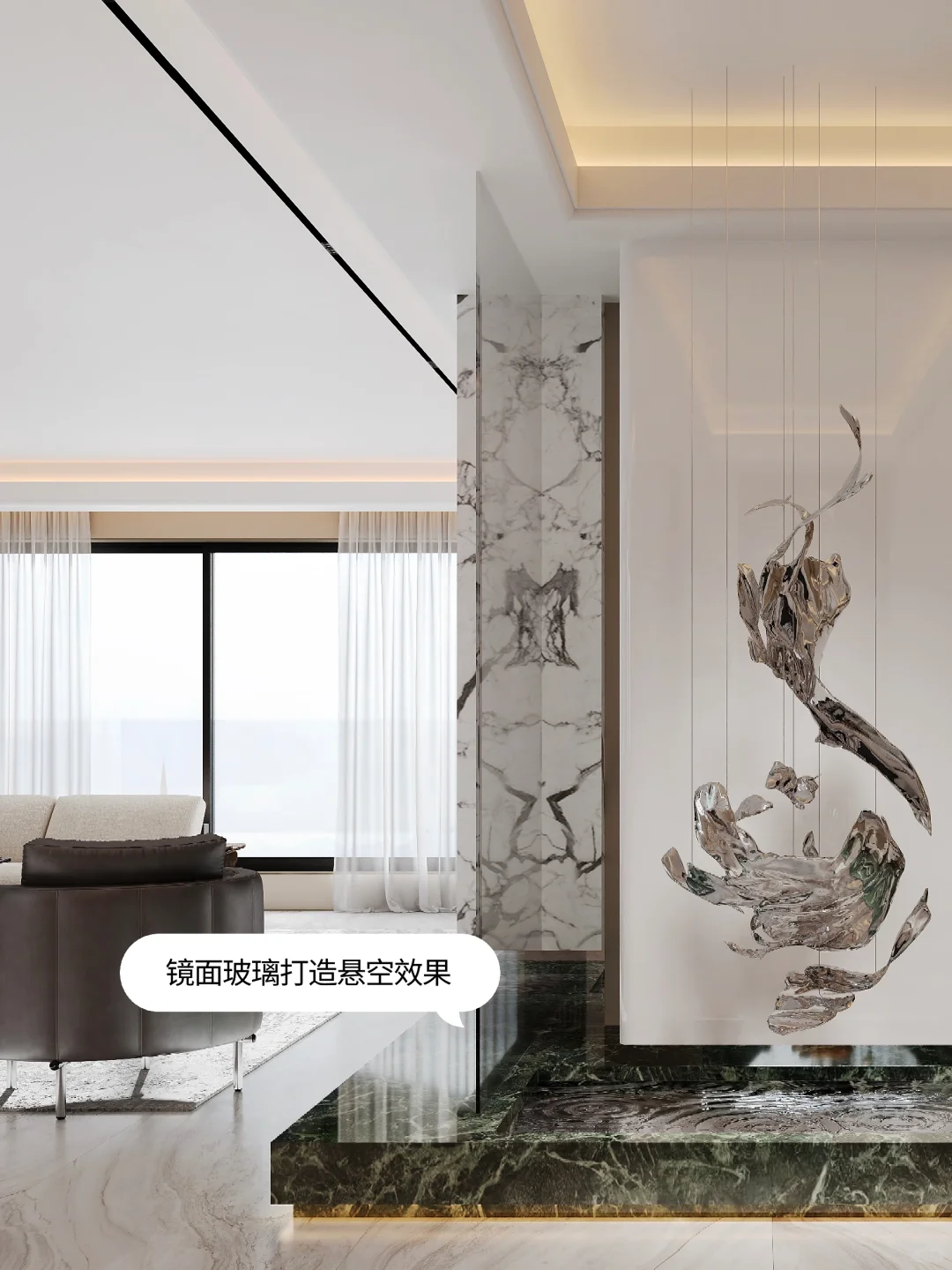 ADDRESS. 温州瓯江峯汇私宅 大理石悬空电视背景墙翻车了?大理石太重下坠、抽屉拉开就往下掉放不了东西?来学习一下我们这必不可能翻车的悬空背景墙做法吧: 1、把大理石电视柜换成地台,同样能够放置物品但完全不会有下坠风险,美观简洁。 2、大理石背景墙固定墙面焊死,背靠实心承重墙内部做木基础表面钉大理石;抬高部分做镜面造型,仿造悬空效果,同时能够保证安全稳固。 需要注意的是:电视需要提前调整好观看视角预留尺寸;为保证美观电线要做好隐藏工作