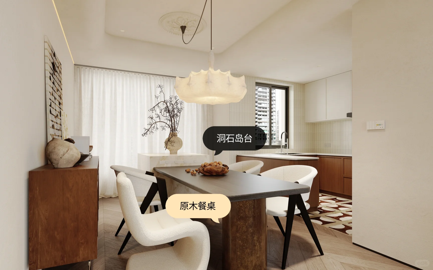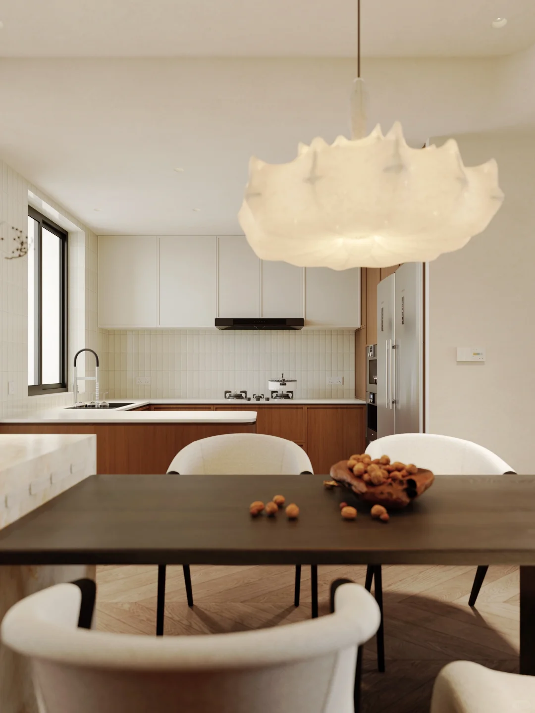 3米高挑空配上5米长岛台,发光厨房也能小酌