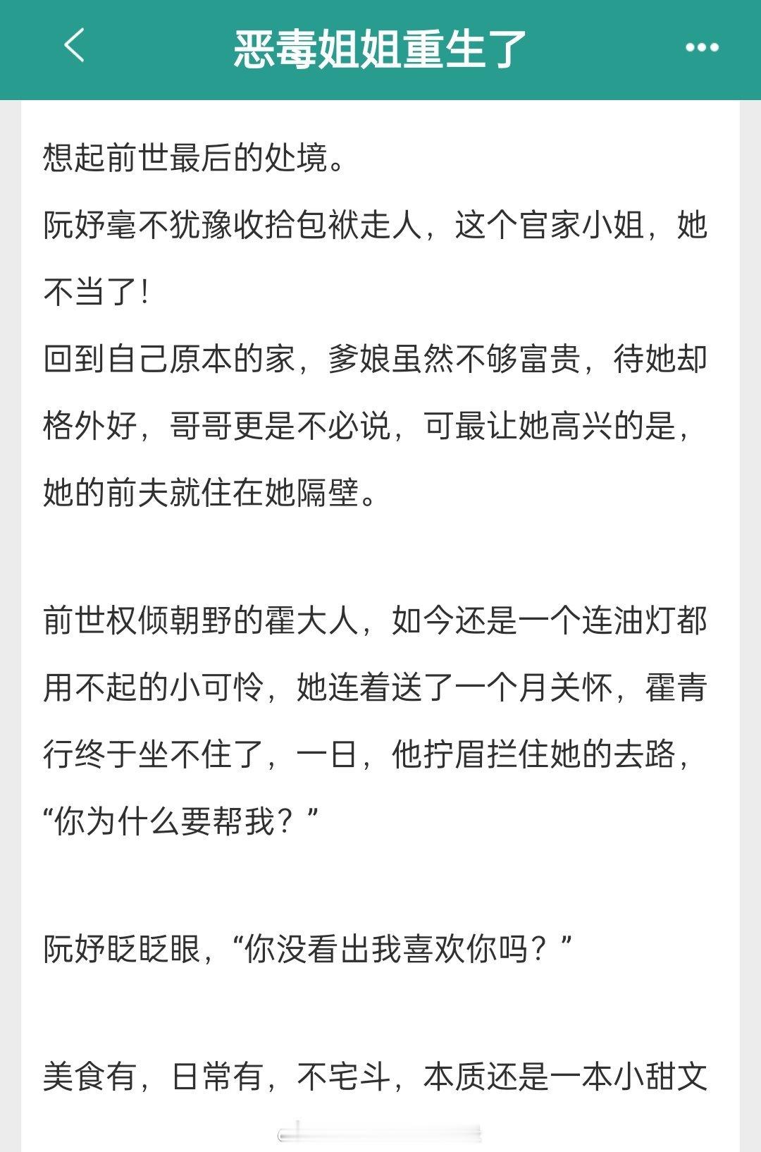 #推文[超话]#493.【小推】《恶毒姐姐重生了》其君折枝 阮妤&霍青行 这
