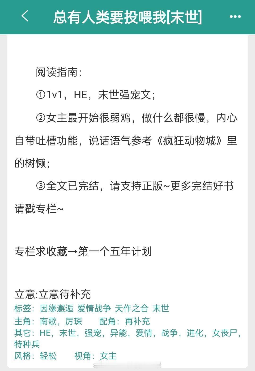 #推文[超话]#486.【强推】《总有人类要投喂我[末世]》笙落落 南歌&厉琛