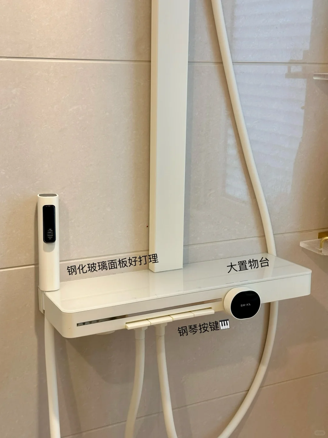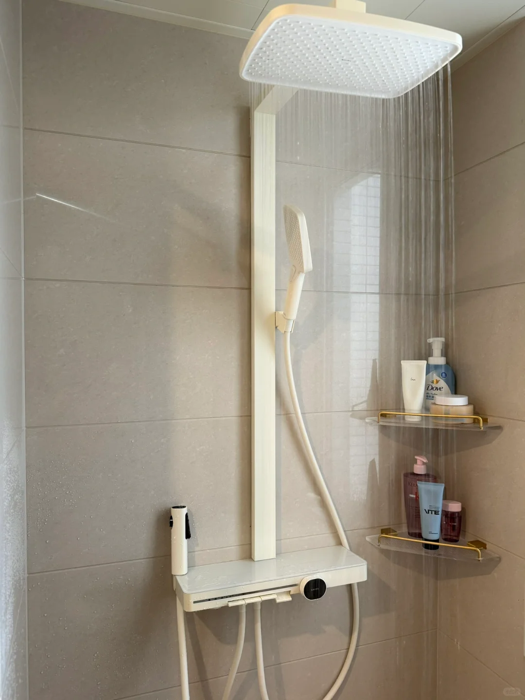 ▫️恒温、顶喷、喷枪、下出水和置物空间通通都有~
