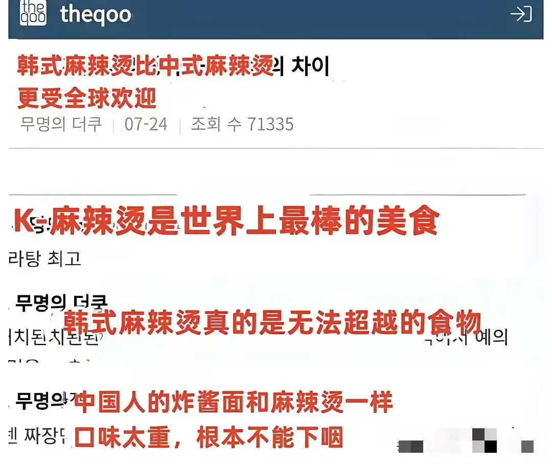 韩国打算偷麻辣烫了。目前已经进展到踩中式麻辣烫,高度赞美自己的“独特创新”:料不变,汤头换成能直接喝的牛骨汤,命名为韩式麻辣烫—K麻辣烫。前面的那个K就是韩国的英文单词Korea缩写。