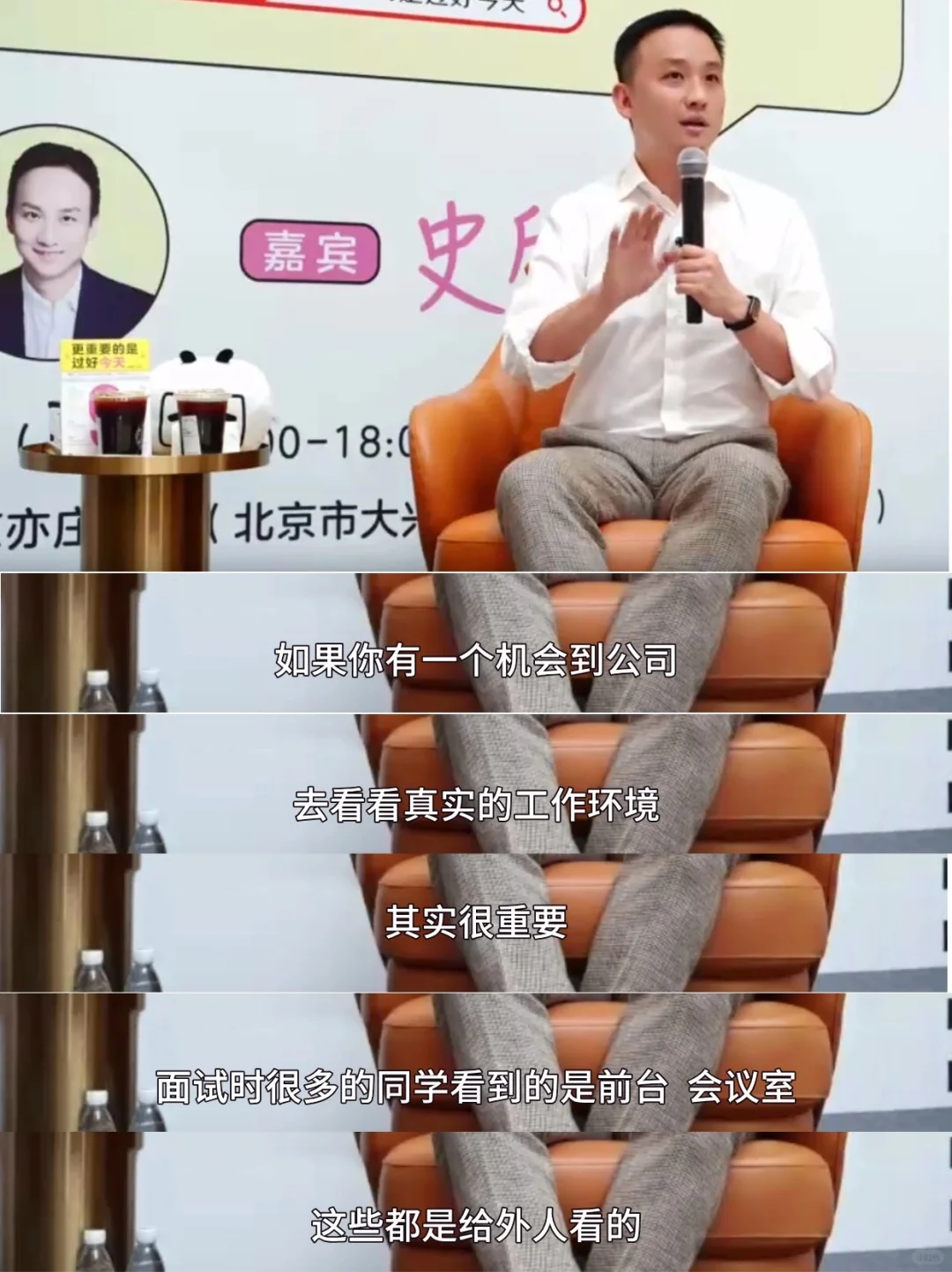 关于面试,他提醒不要说父母的话,而要说自己的观点。