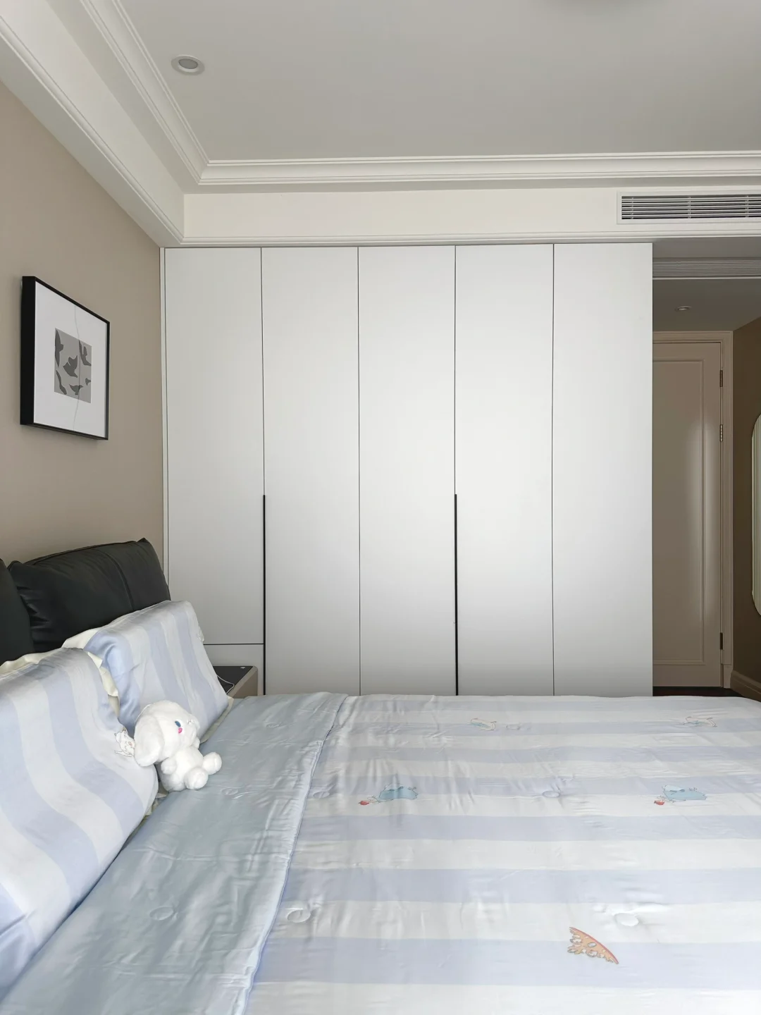 ☑️全屋定制是衣柜+侧边柜的设计,用1㎡拓展收纳空间。